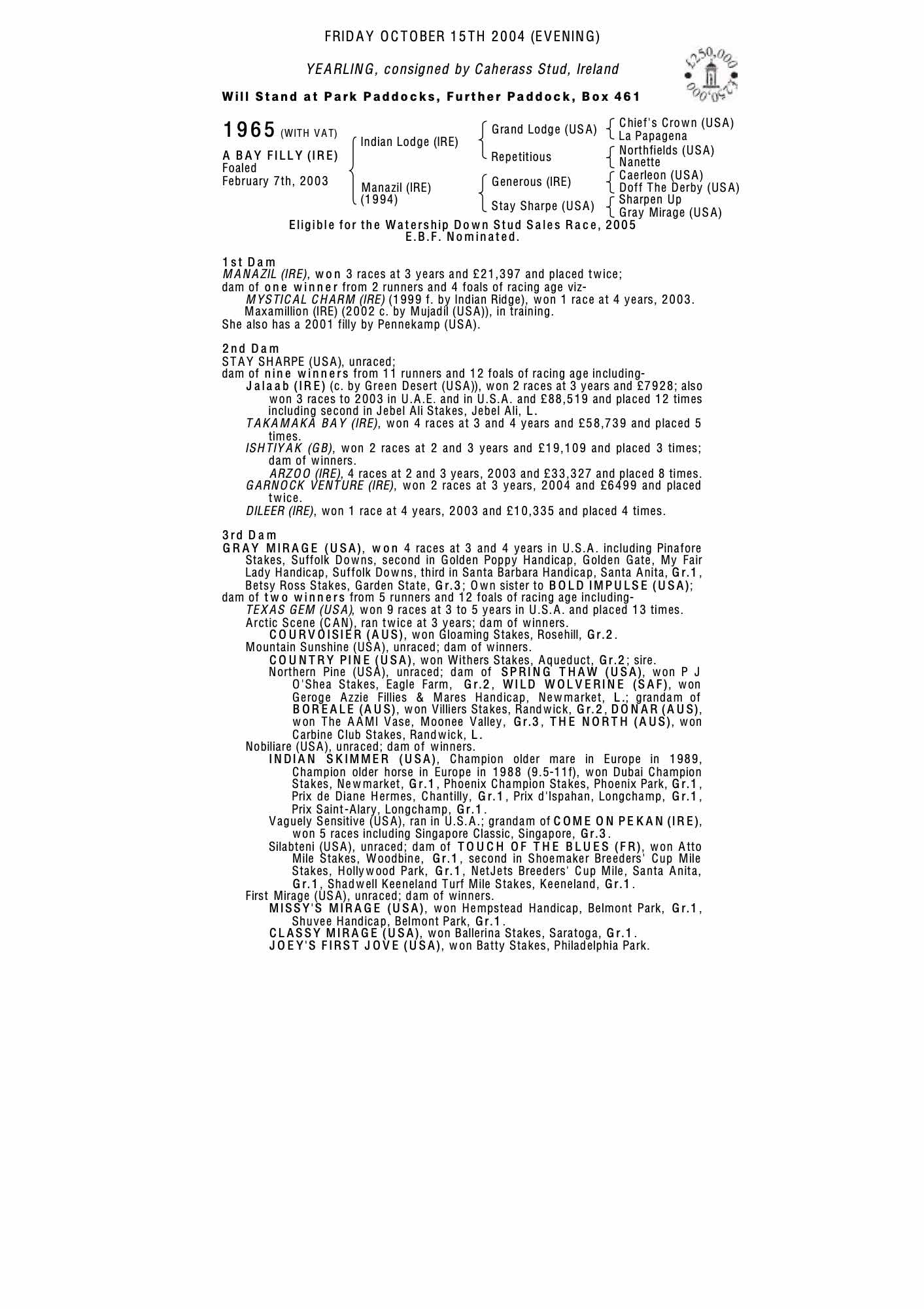October Yearling Sale, Book 2 2005 lot 836 C. 2004, Caherass Stud, Ireland=>Vendor 10,000 gns