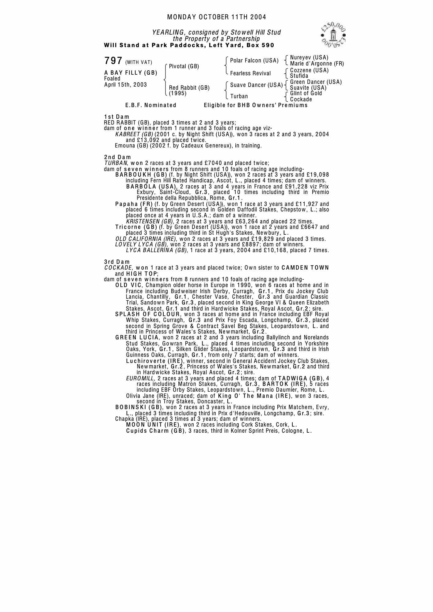 October Yearling Sale, Book 1 2003 lot 352 F. by Cadeaux Genereux 2002, Stowell Hill Stud=>Nicholas Clement 25,000 gns