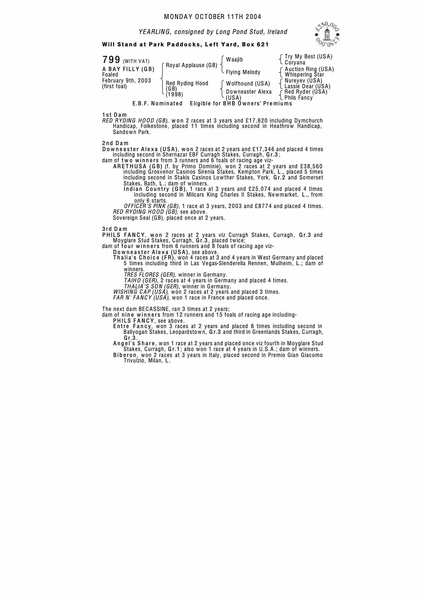 December Foal Sale 2003 lot 1118, Petches Farm=>McKeever St Lawrence 27,000 gns