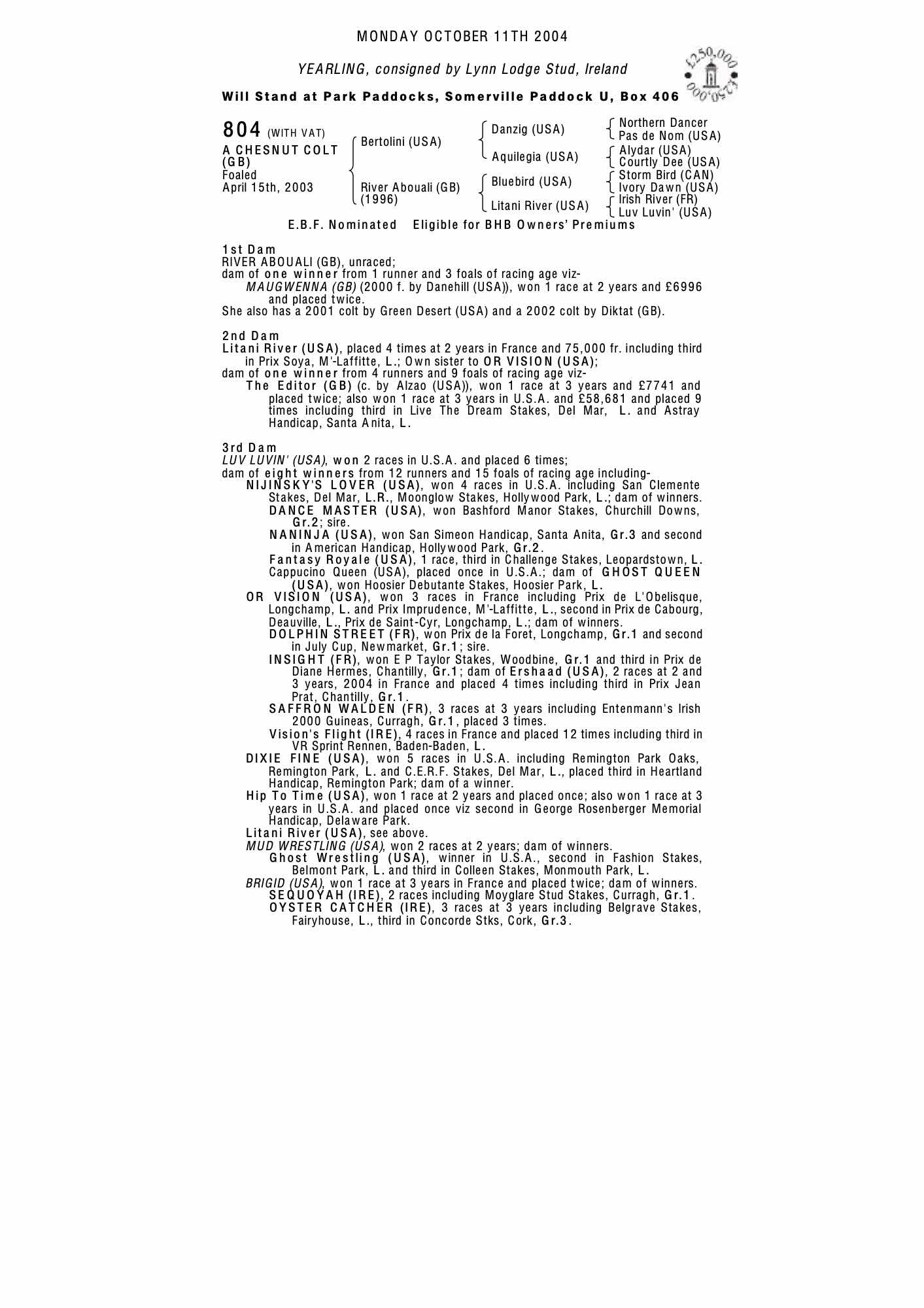 Consignor: Lynn Lodge Stud, Ireland
