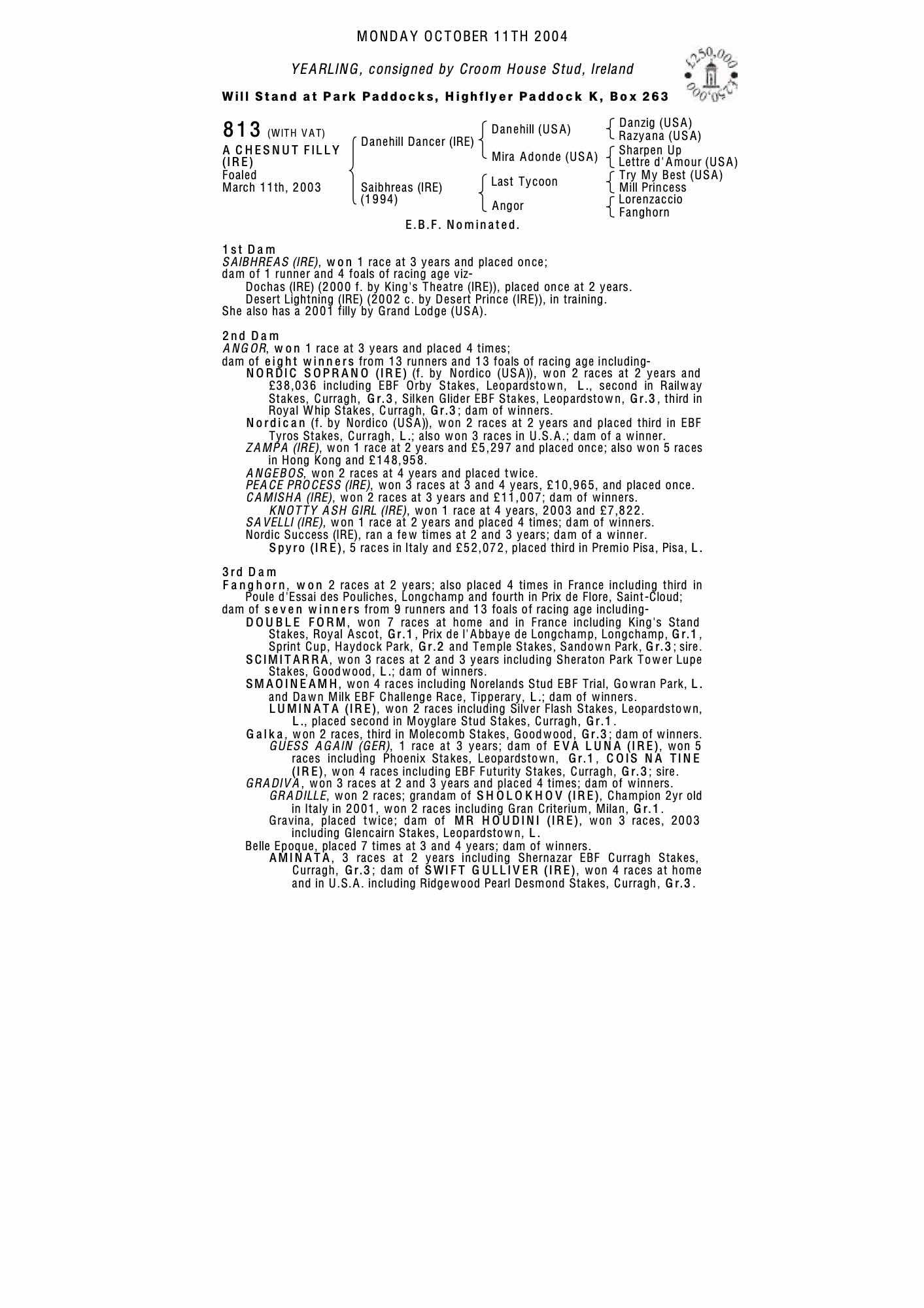 October Yearling Sale, Book 1 2003 lot 51 C. by Desert Prince (IRE) 2002, Yeomanstown Stud, Ireland=>D Woods 120,000 gns