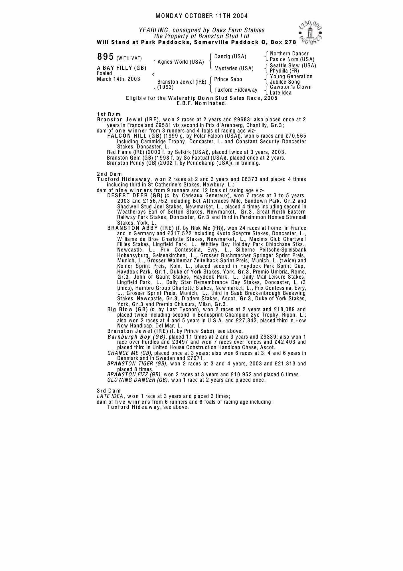 October Yearling Sale, Book 1 2003 lot 969 F. by Pennekamp (USA) 2002, Oaks Farm Stables=>Vendor 13,000 gns