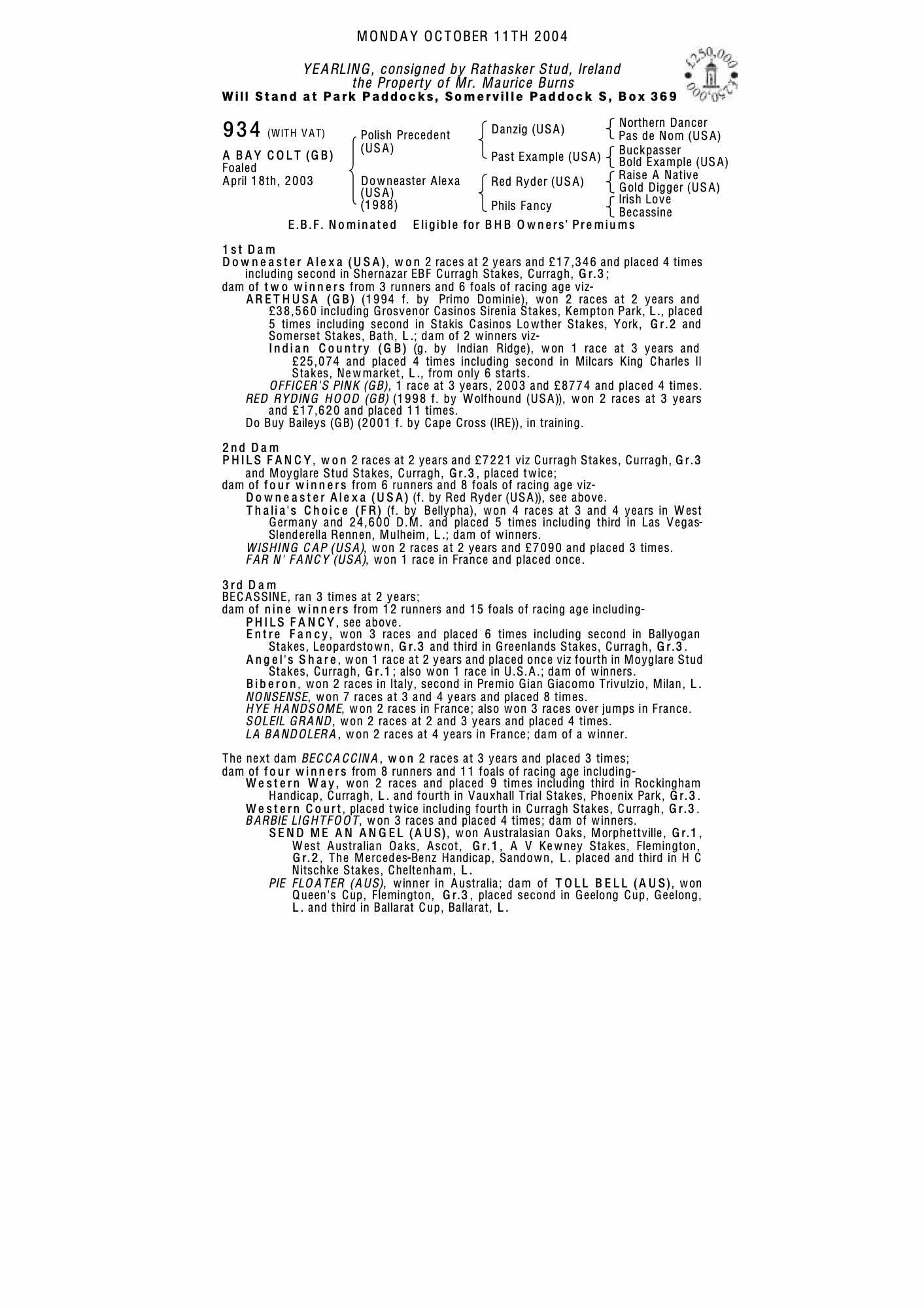 December Foal Sale 2003 lot 860, Petches Farm=>Rathasker Stud 9,500 gns