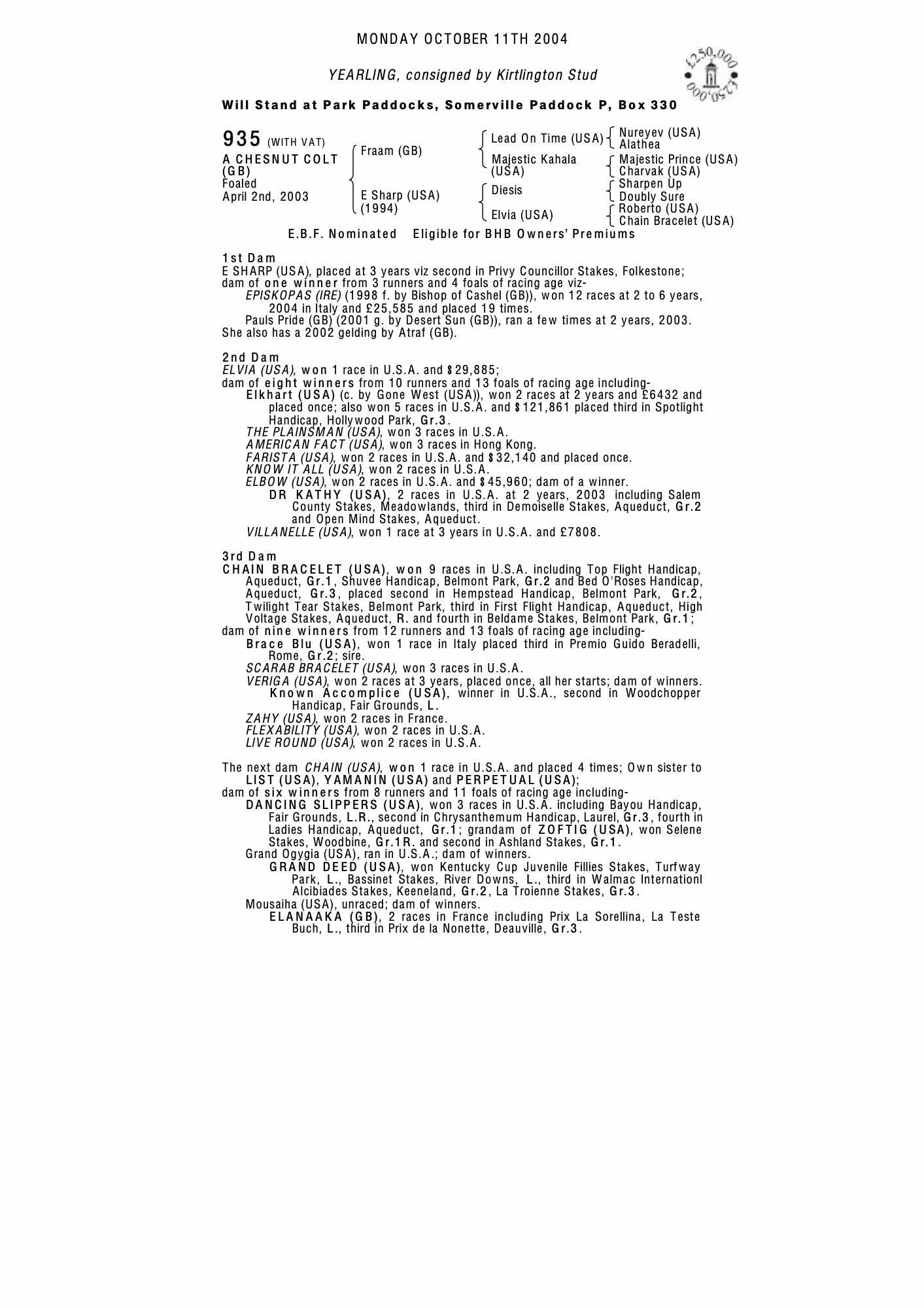 December Foal Sale 2003 lot 479, Tweenhills Farm & Stud=>Will Edmeades Bloodstock 13,000 gns