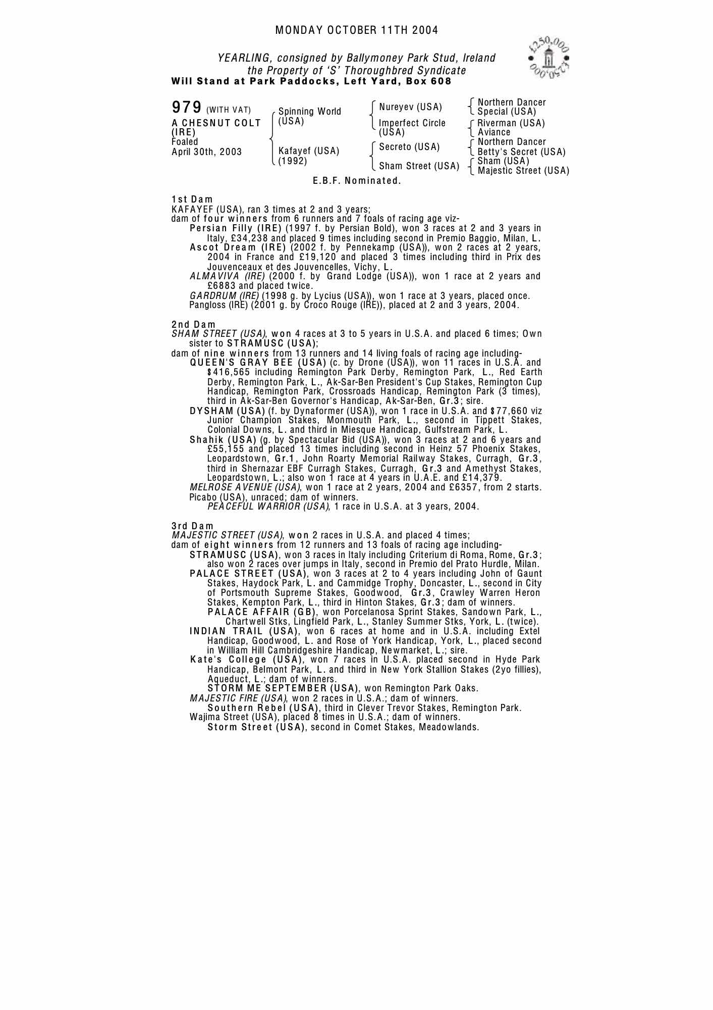 December Foal Sale 2003 lot 1290, Ennistown Stud, Ireland=>S Thoroughbred Syndicate 20,000 gns