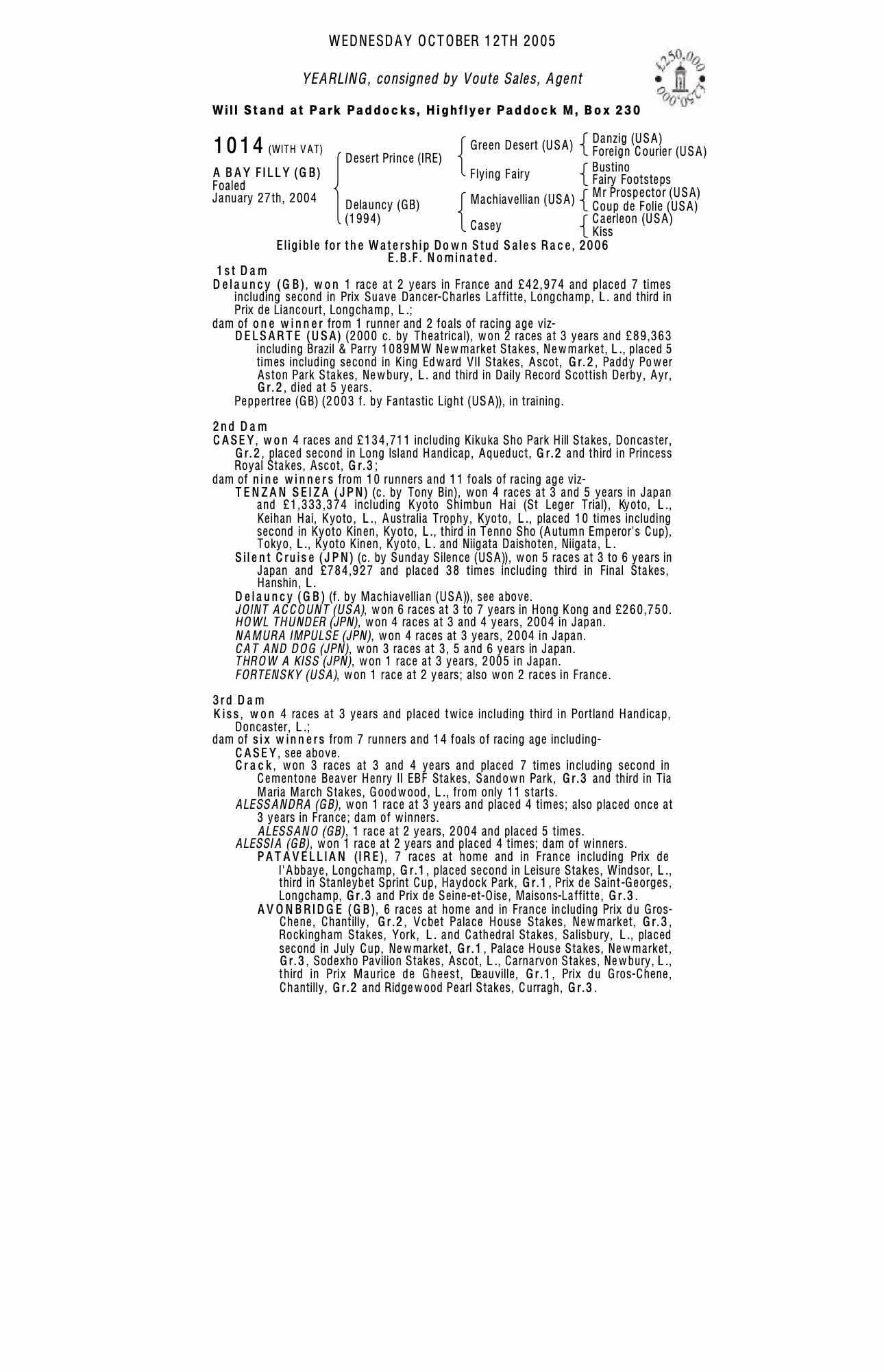 October Yearling Sale, Book 1 2008 lot 475 F. by Montjeu (IRE) 2007, Camas Park Stud, Ireland=>San Paolo Agristud Srl 42,000 gns
