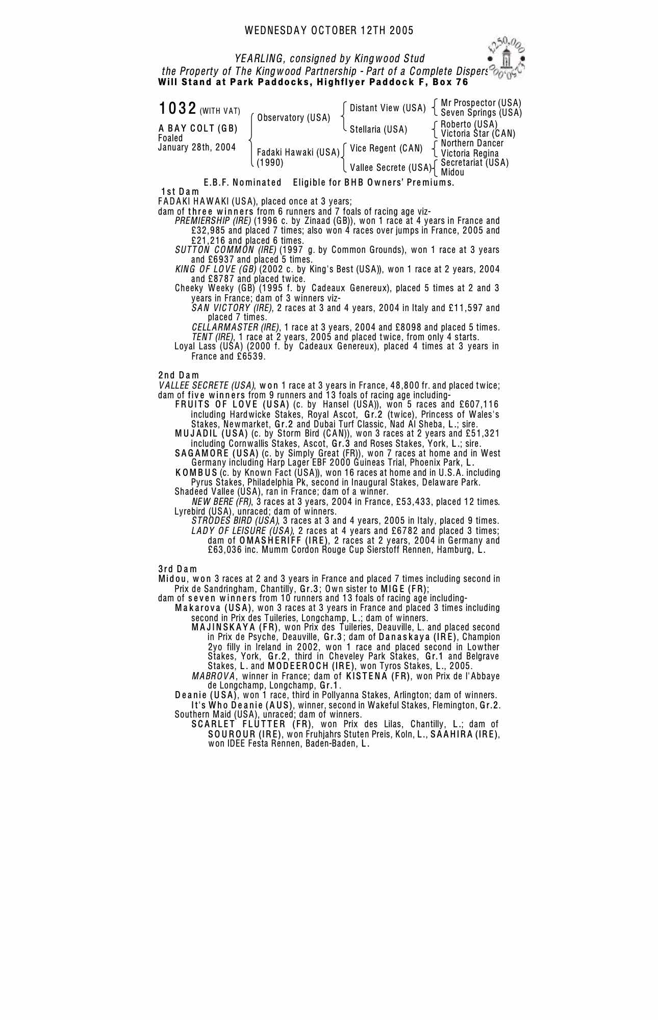 October Yearling Sale, Book 2 2006 lot 1774 F. by Lujain (USA) 2005, Stringston Farm=>C Dwyer 2,500 gns