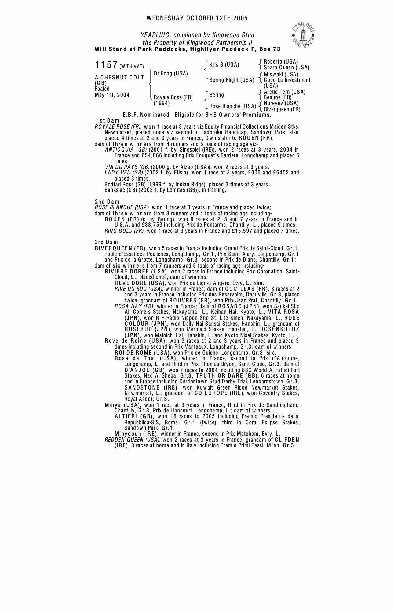 Breeze Up Sale 2005 lot 74 F. by Lomitas (GB) 2003, Kingwood Stud=>A Brambilla 14,000 gns