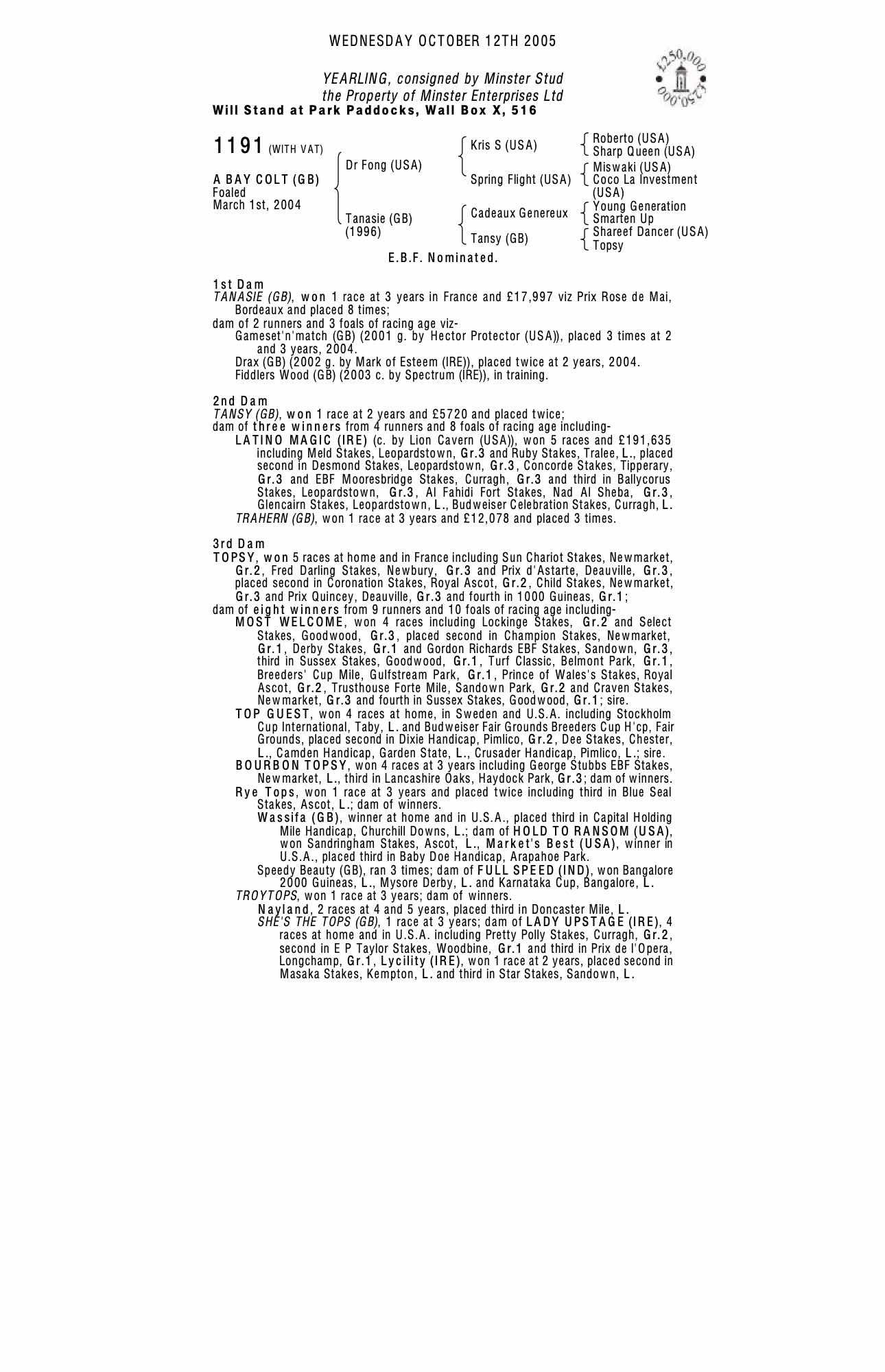 October Yearling Sale, Book 2 2004 lot 1126 C. by Spectrum (IRE) 2003, Minster Stud=>Lot Not Sold 13,000 gns