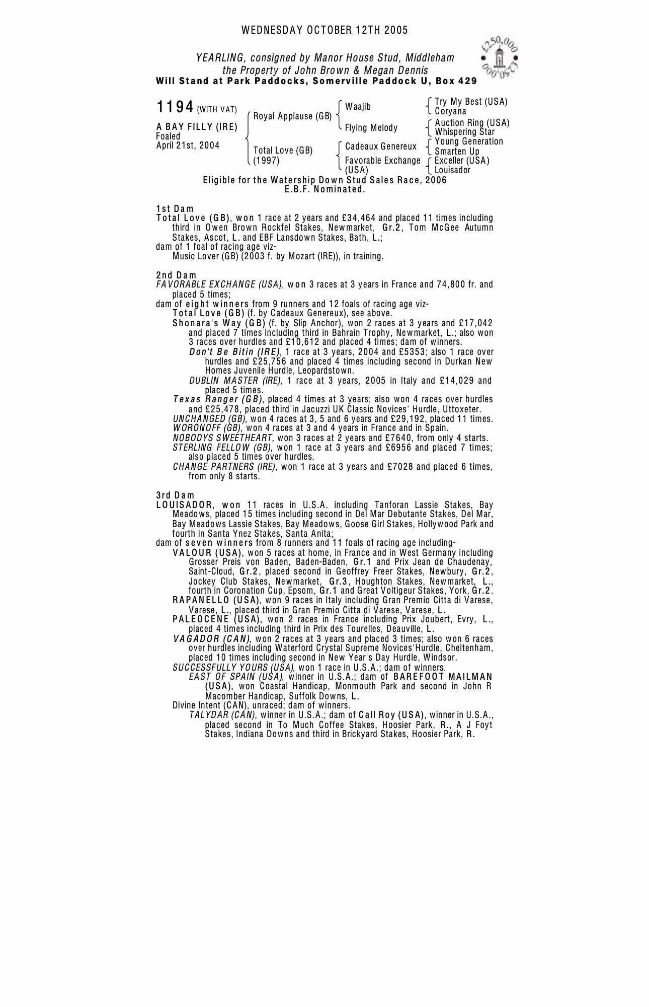 October Yearling Sale, Book 3 2010 lot 2112 C. by Halling (USA) 2009, Voute Sales Ltd. (Agent)=>Pianeta Cavallo Latina 2,000 gns