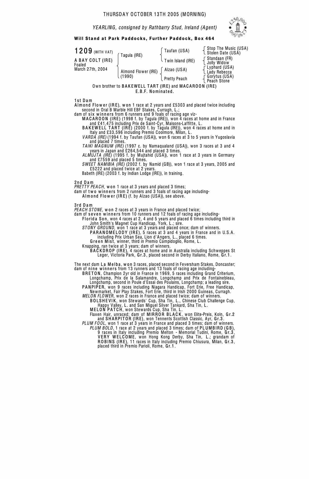 October Yearling Sale 2001 lot 574 F. , Rathbarry Stud, Ireland (Agent)=>Kern/Lillingston Association 40,000 gns