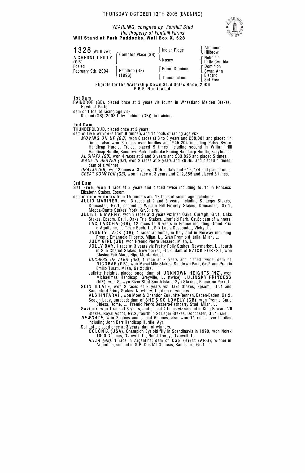October Yearling Sale, Book 2 2004 lot 1070 F. by Inchinor (GB) 2003, Fonthill Stud=>Geoffrey Howson Bloodstock 5,000 gns