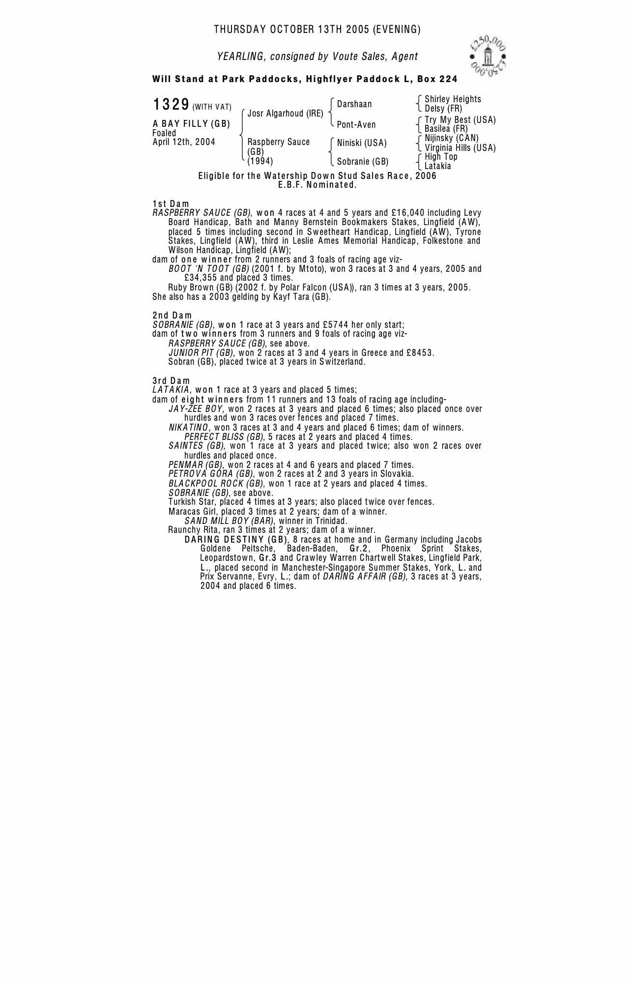 October Yearling Sale, Book 2 2007 lot 972 F. by Rainbow Quest (USA) 2006, Voute Sales Ltd. (Agent)=>Lot Not Sold 9,000 gns