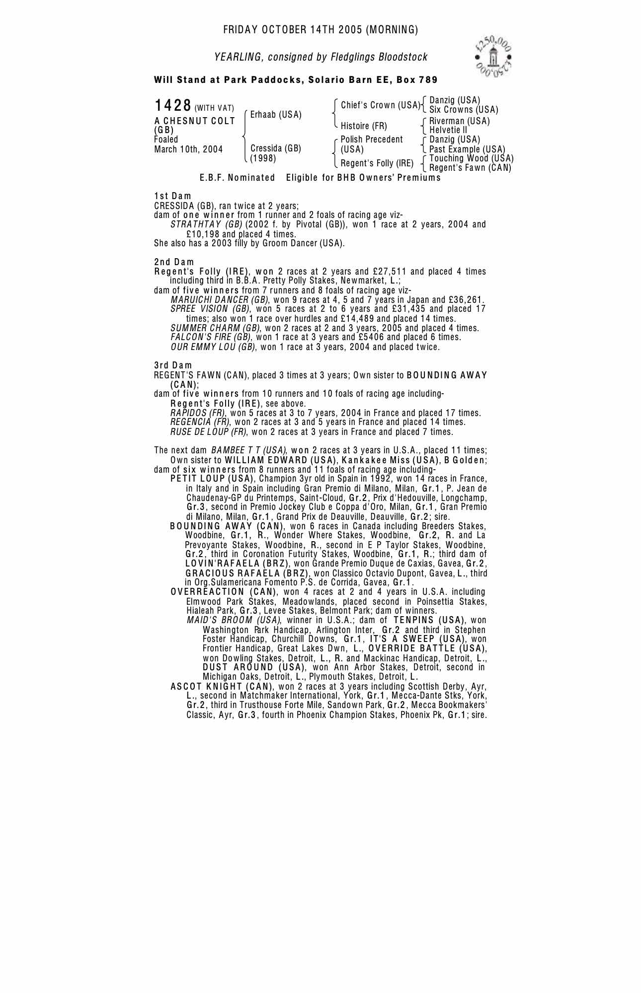 December Foal Sale 2004 lot 438, Broughton Bloodstock=>Fledglings Bloodstock 5,200 gns