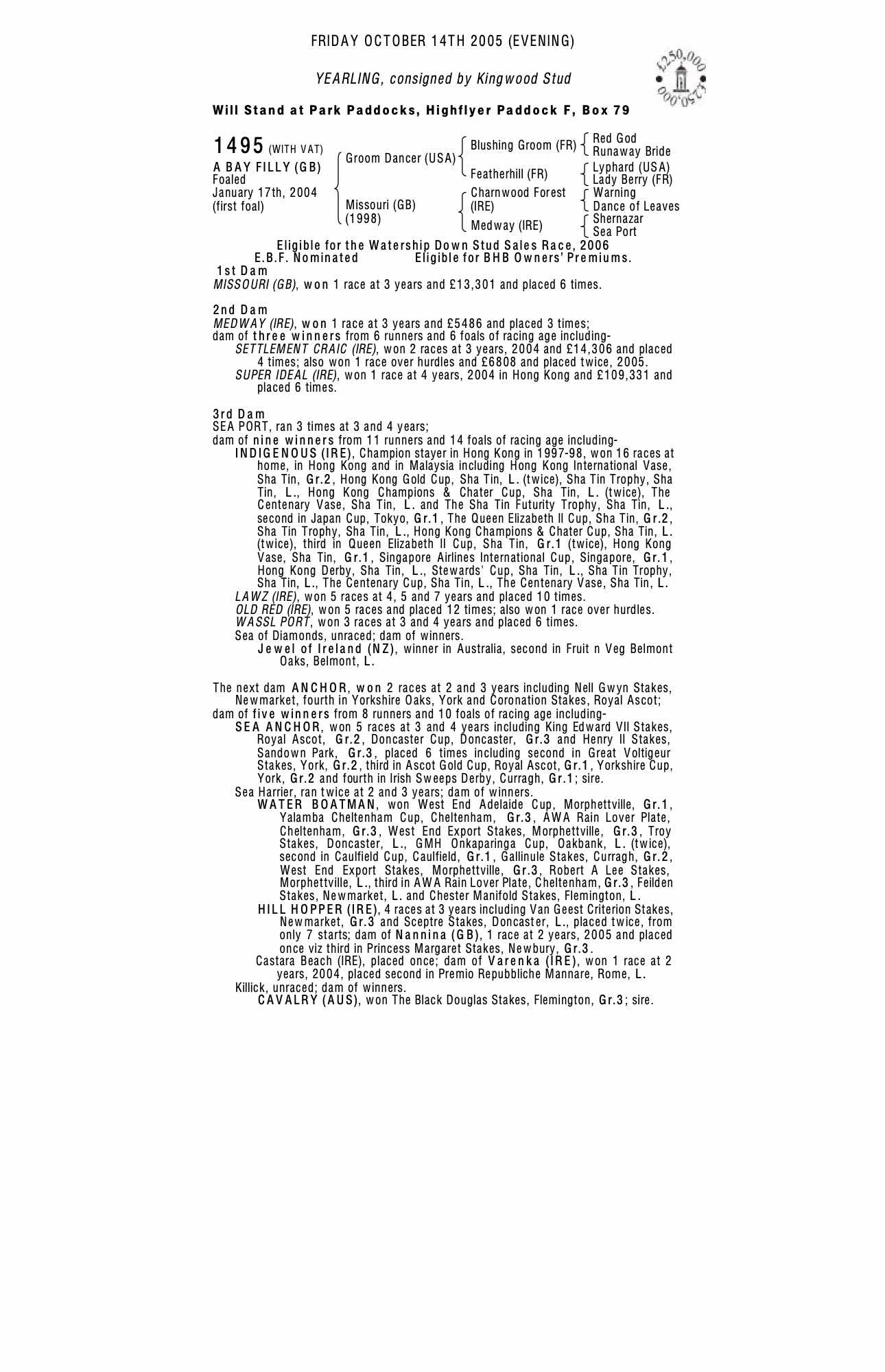 October Yearling Sale, Book 2 2006 lot 1392 F. by Medicean (GB) 2005, Kingwood Stud=>MH Tompkins 17,000 gns