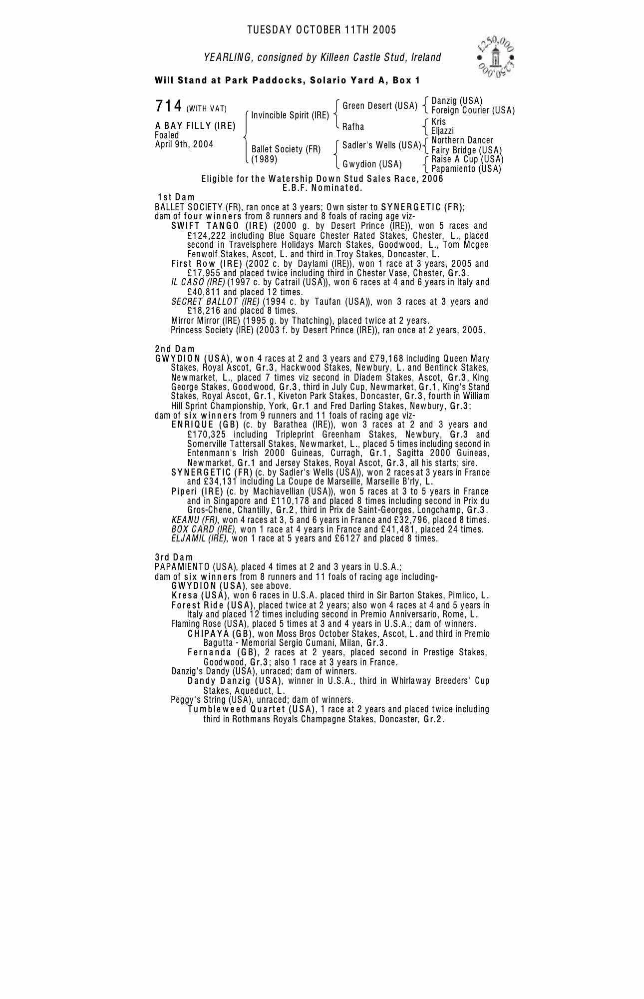 October Yearling Sale, Book 2 2004 lot 884 F. by Desert Prince (IRE) 2003, Killeen Castle Stud, Ireland=>C Gordon-Watson Bloodstock 52,000 gns