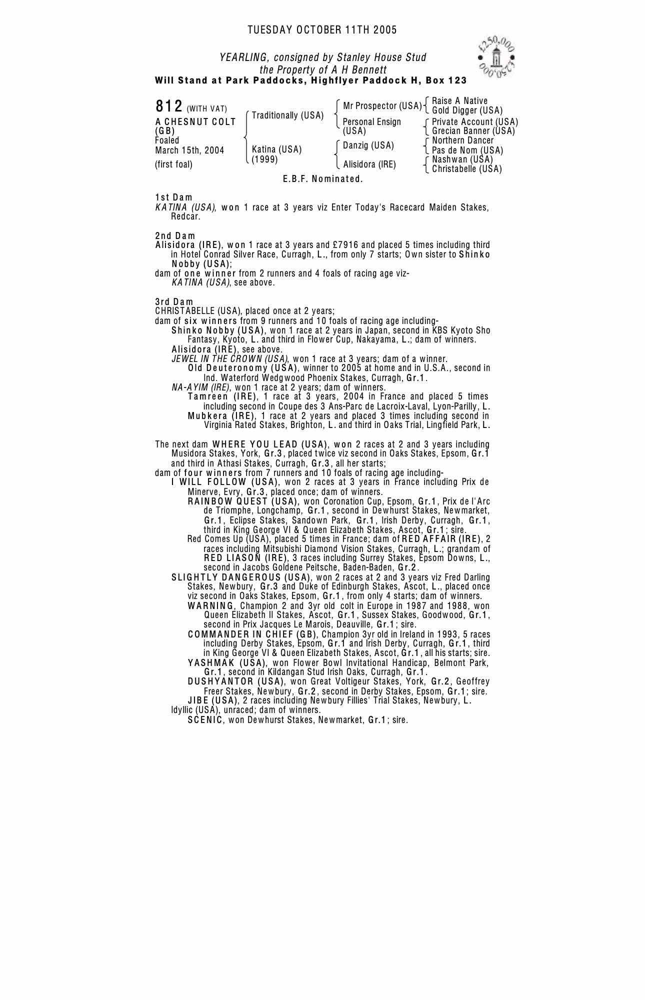 December Foal Sale 2005 lot 520 C. by Singspiel (IRE) 2005, Stanley House Stud=>Penmarric Stud 70,000 gns