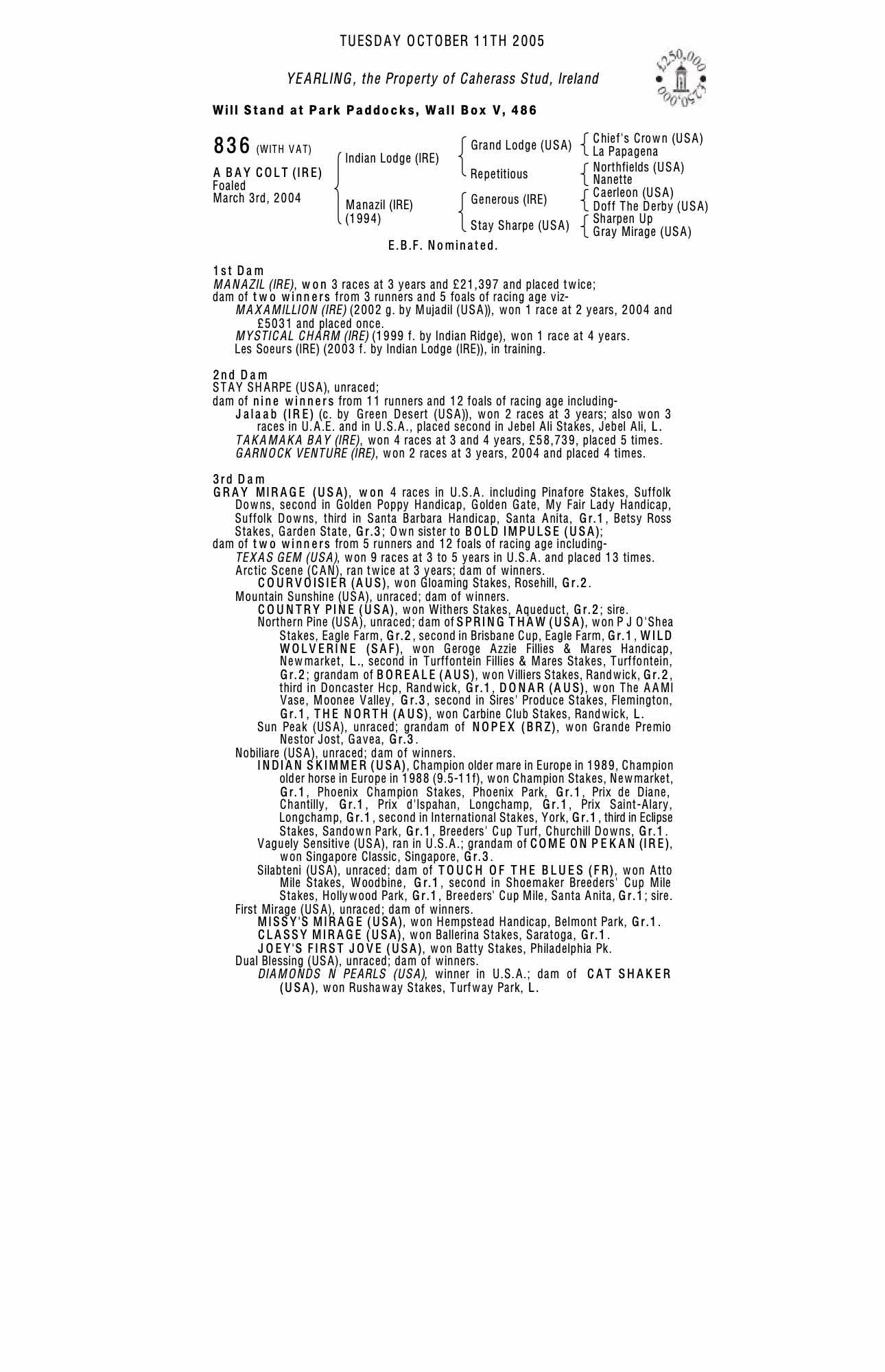 October Yearling Sale, Book 2 2004 lot 1965 F. 2003, Caherass Stud, Ireland=>Kern/Lillingston Association 12,500 gns