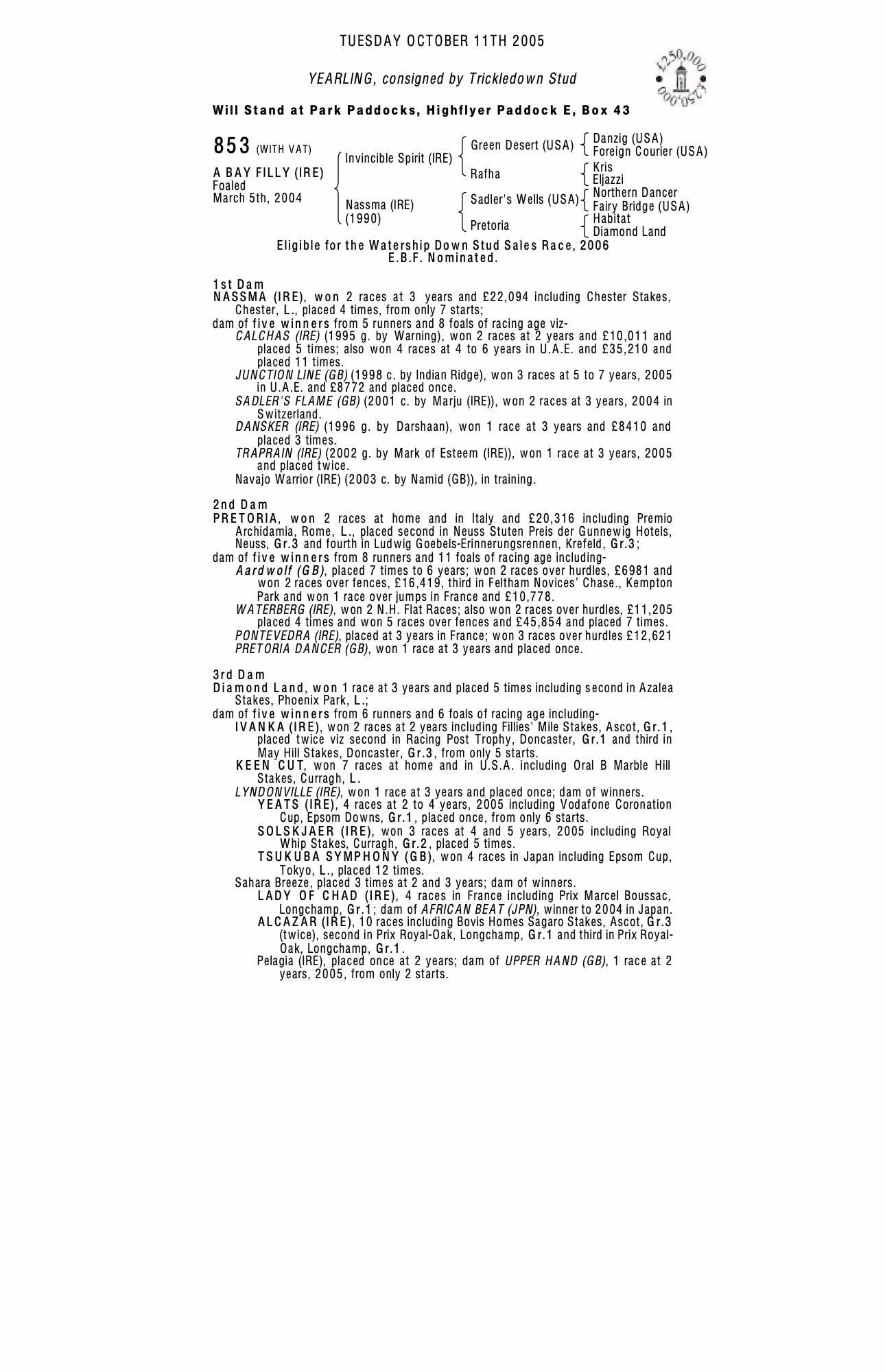 Invincible Spirit (IRE) / Nassma (IRE) B.F.