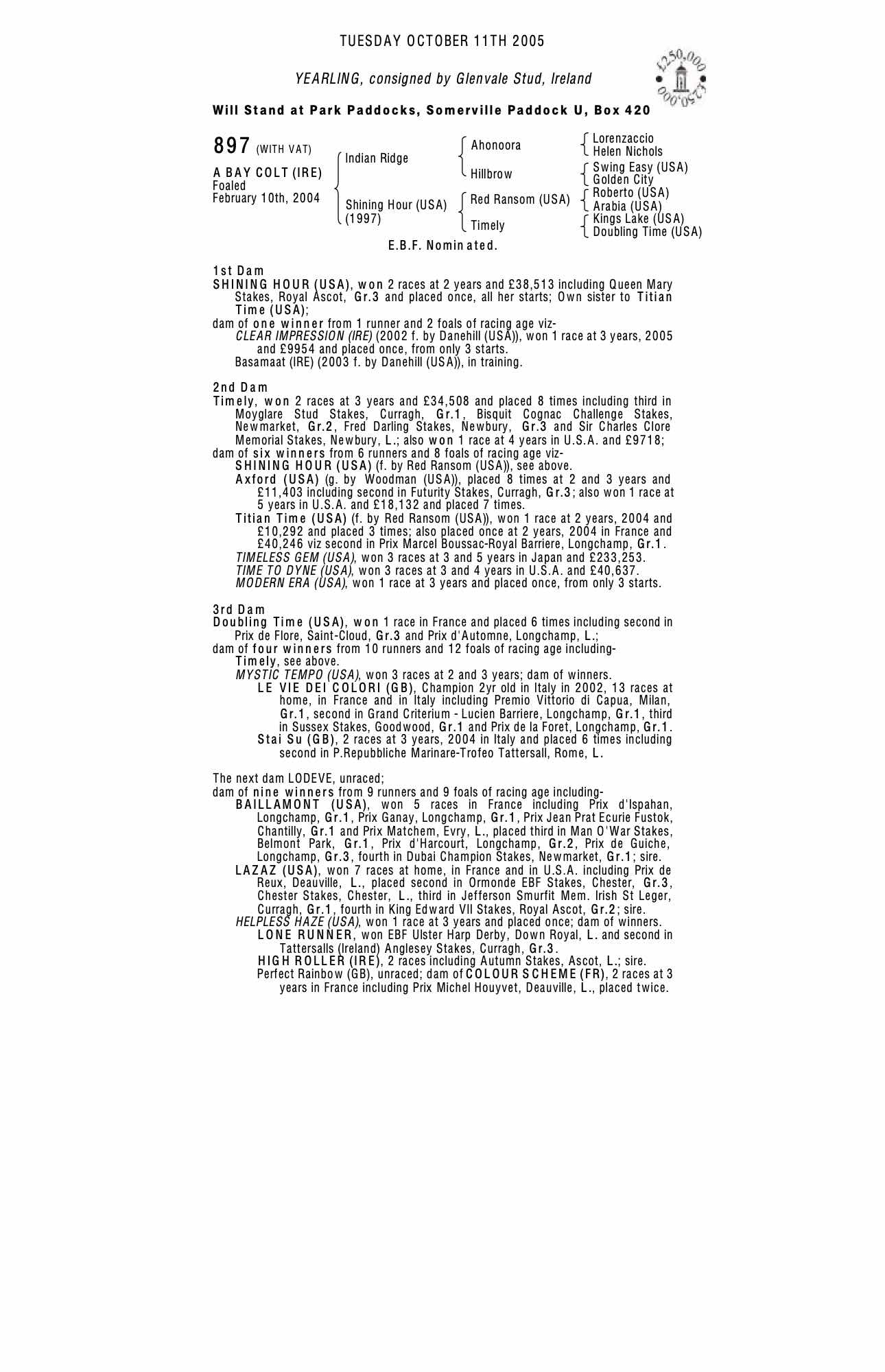 October Yearling Sale, Book 1 2004 lot 361 F. by Danehill (USA) 2003, Voute Sales, Agent=>Shadwell Estate Company 130,000 gns