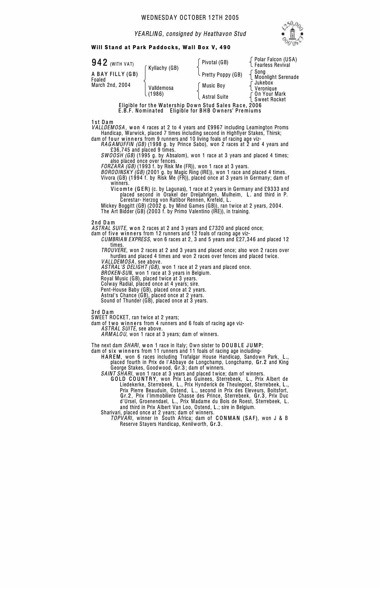 October Yearling Sale, Book 2 2004 lot 1659 F. by Primo Valentino (IRE) 2003, Heathavon Stables=>Vendor 11,000 gns