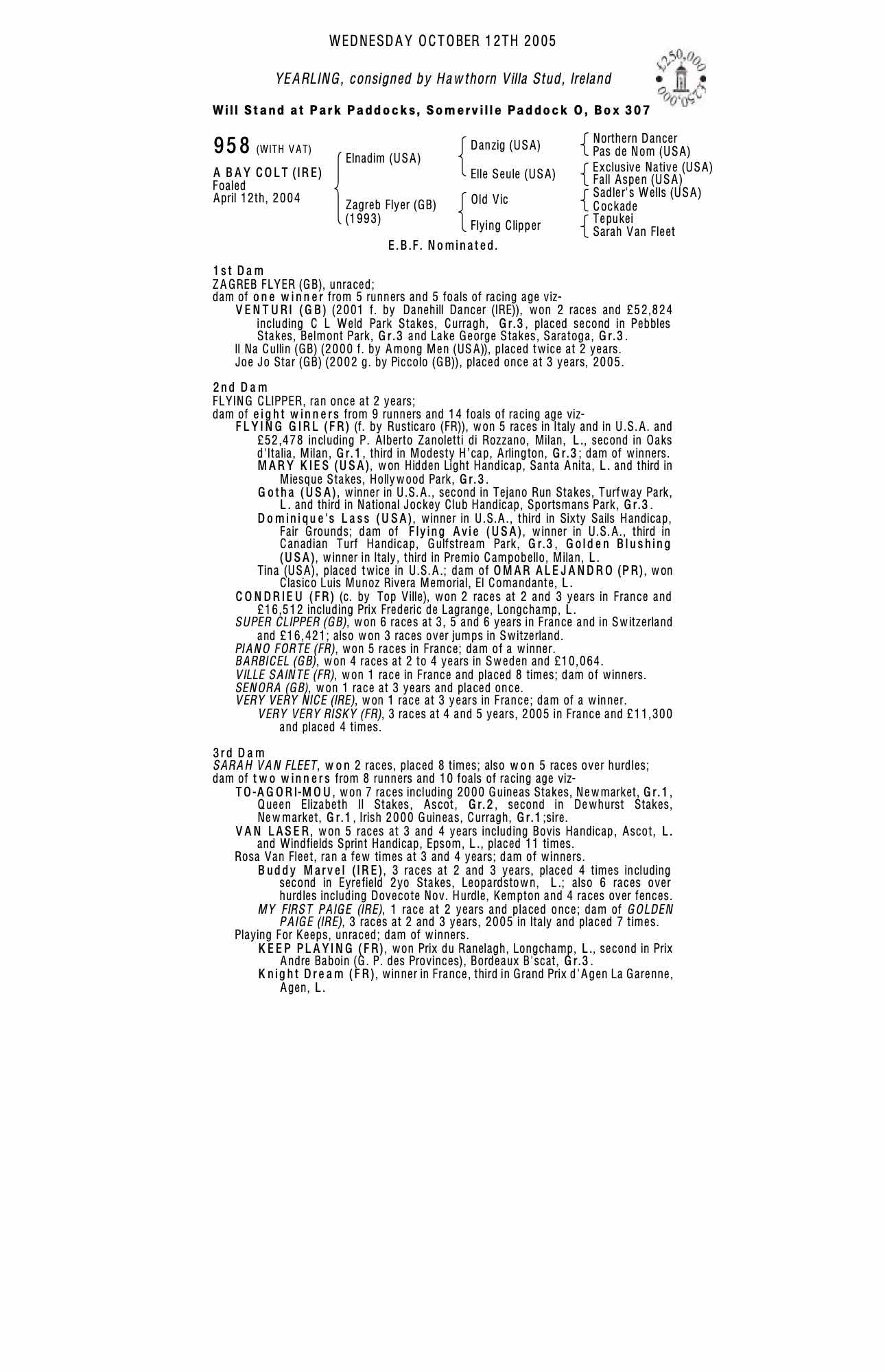 December Mare Sale 2005 lot 2035 Venturi (GB) (M. by Danehill Dancer (IRE)), Ballyhimikin Stud, Ireland=>Vendor 325,000 gns