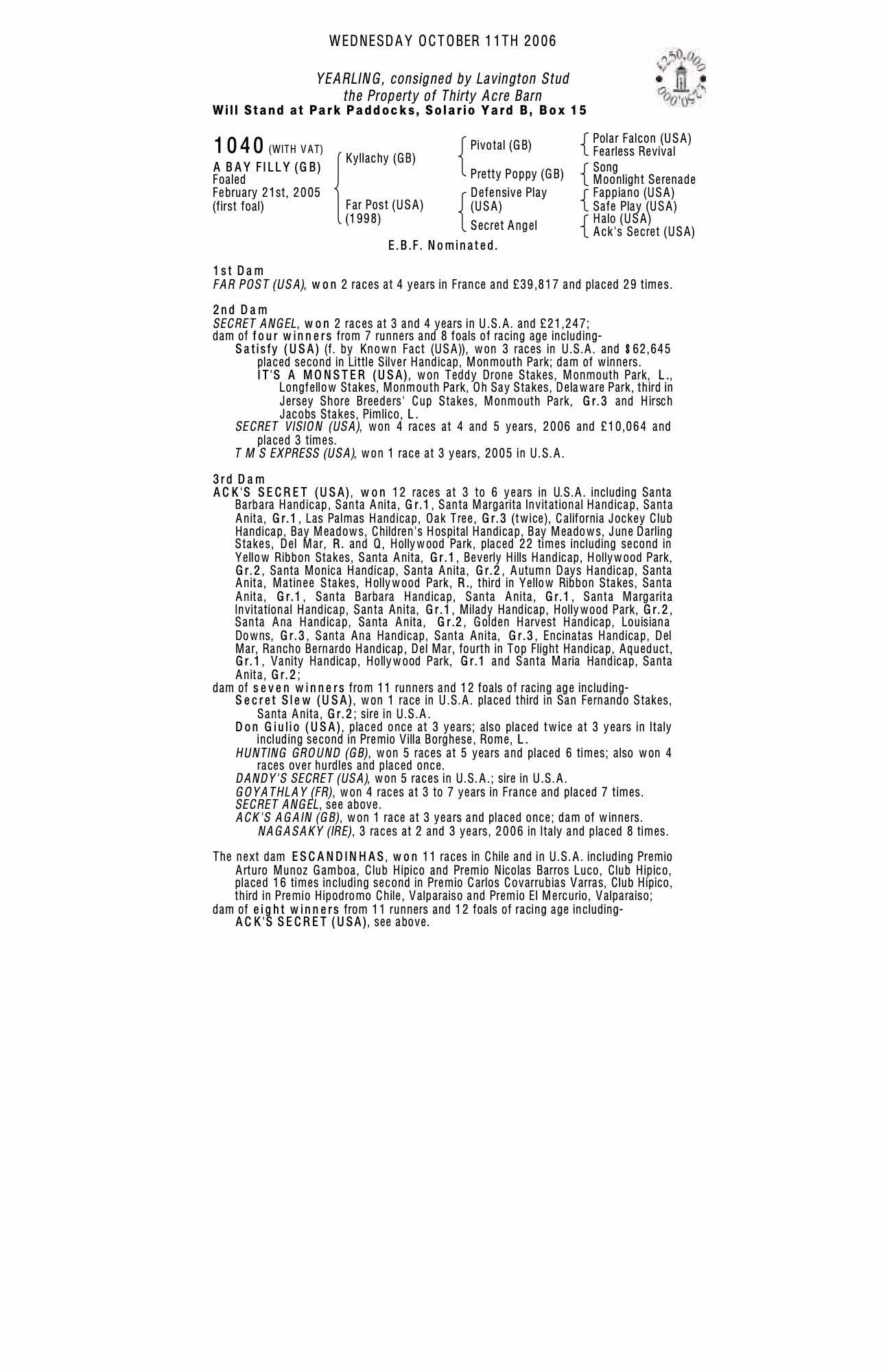 December Foal Sale 2005 lot 1371, Freedom Farm Stud=>Geoffrey Howson Bloodstock 17,000 gns