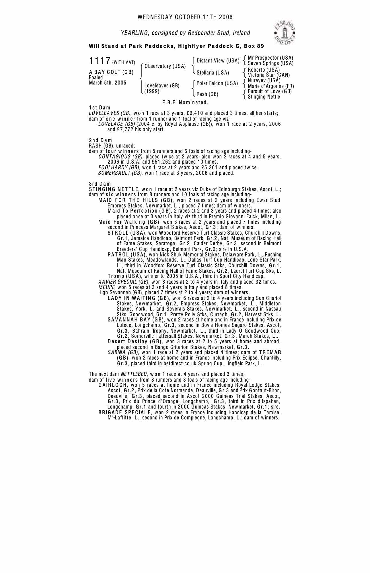 Consignor: Redpender Stud, Ireland