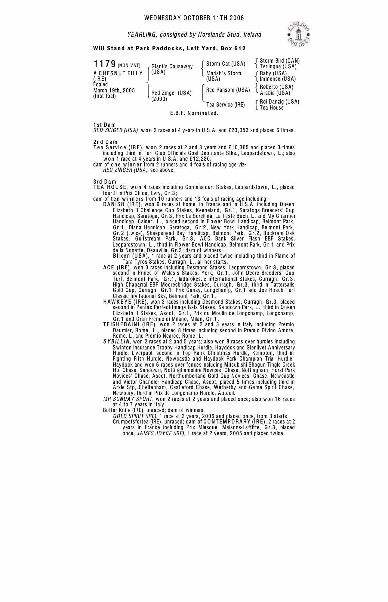 Consignor: Norelands Stud, Ireland