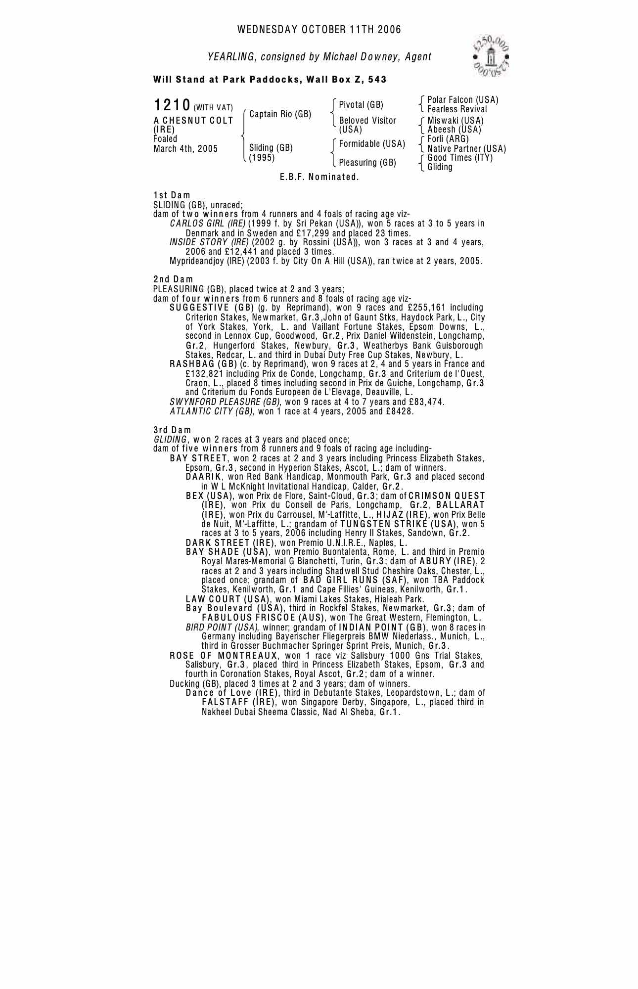 September Yearling Sale 2001 lot 545 F. by Flying Spur (AUS) 2000, Michael Downey=>A Skiffington €5,079