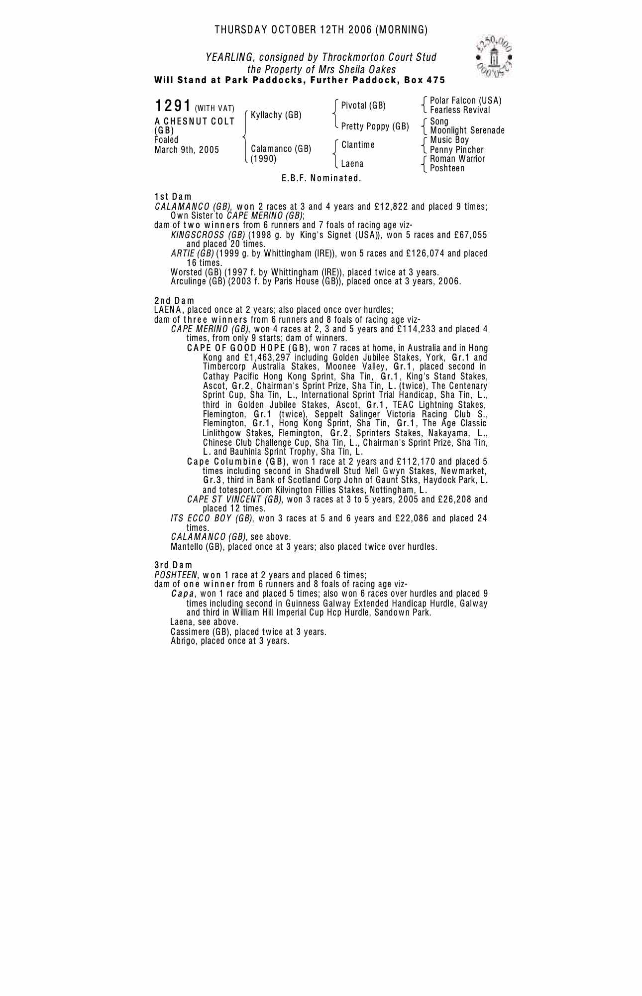 October Yearling Sale, Book 1 2008 lot 417 F. 2007, Throckmorton Court Stud=>Vendor 50,000 gns