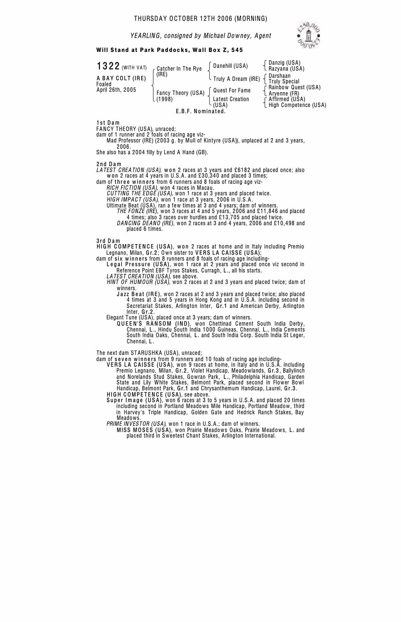 Consignor: Michael Downey, Agent