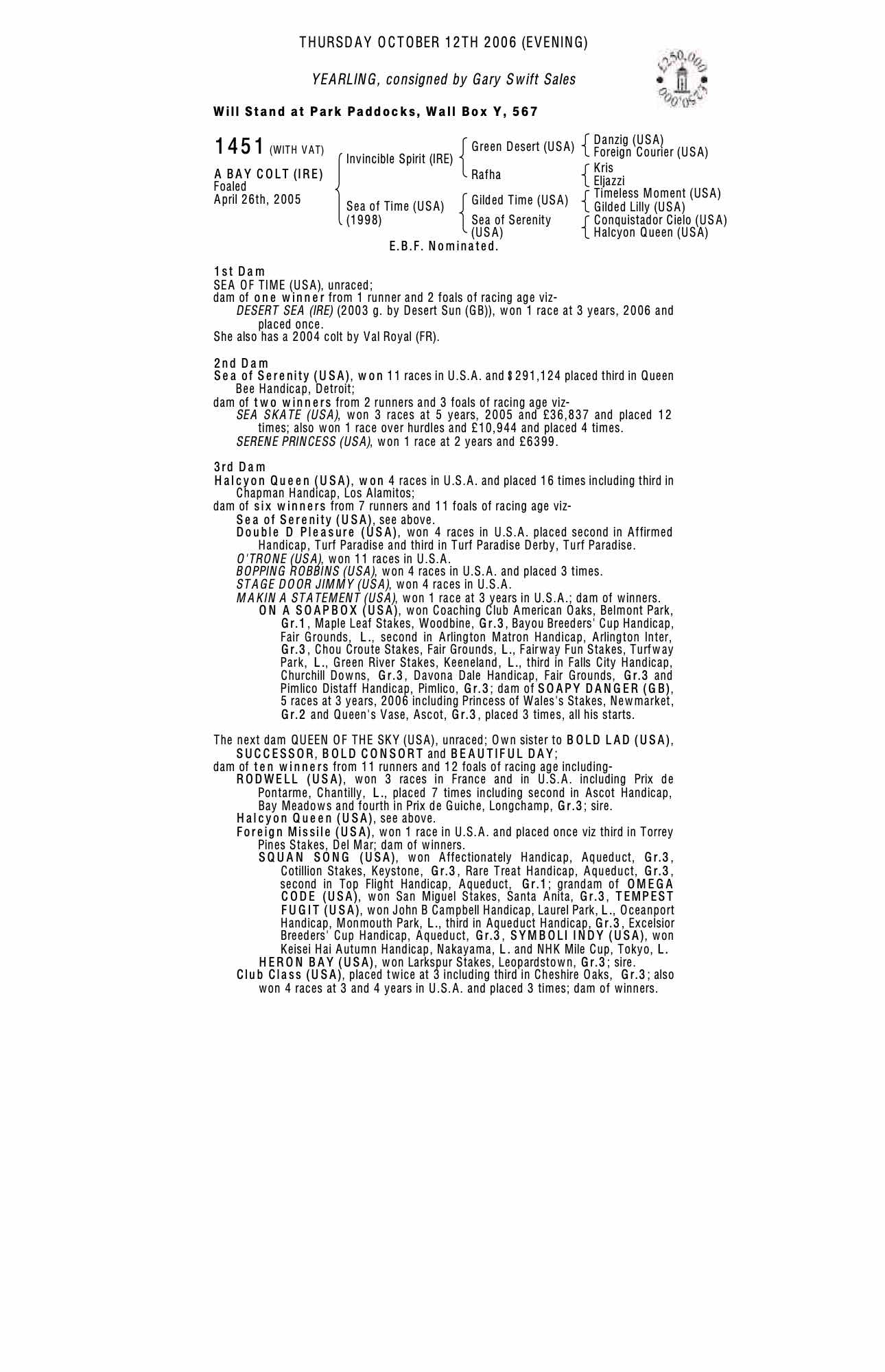October Yearling Sale, Book 2 2004 lot 1088 C. by Desert Sun (GB) 2003, Lynn Lodge Stud, Ireland=>C Tinkler 31,000 gns