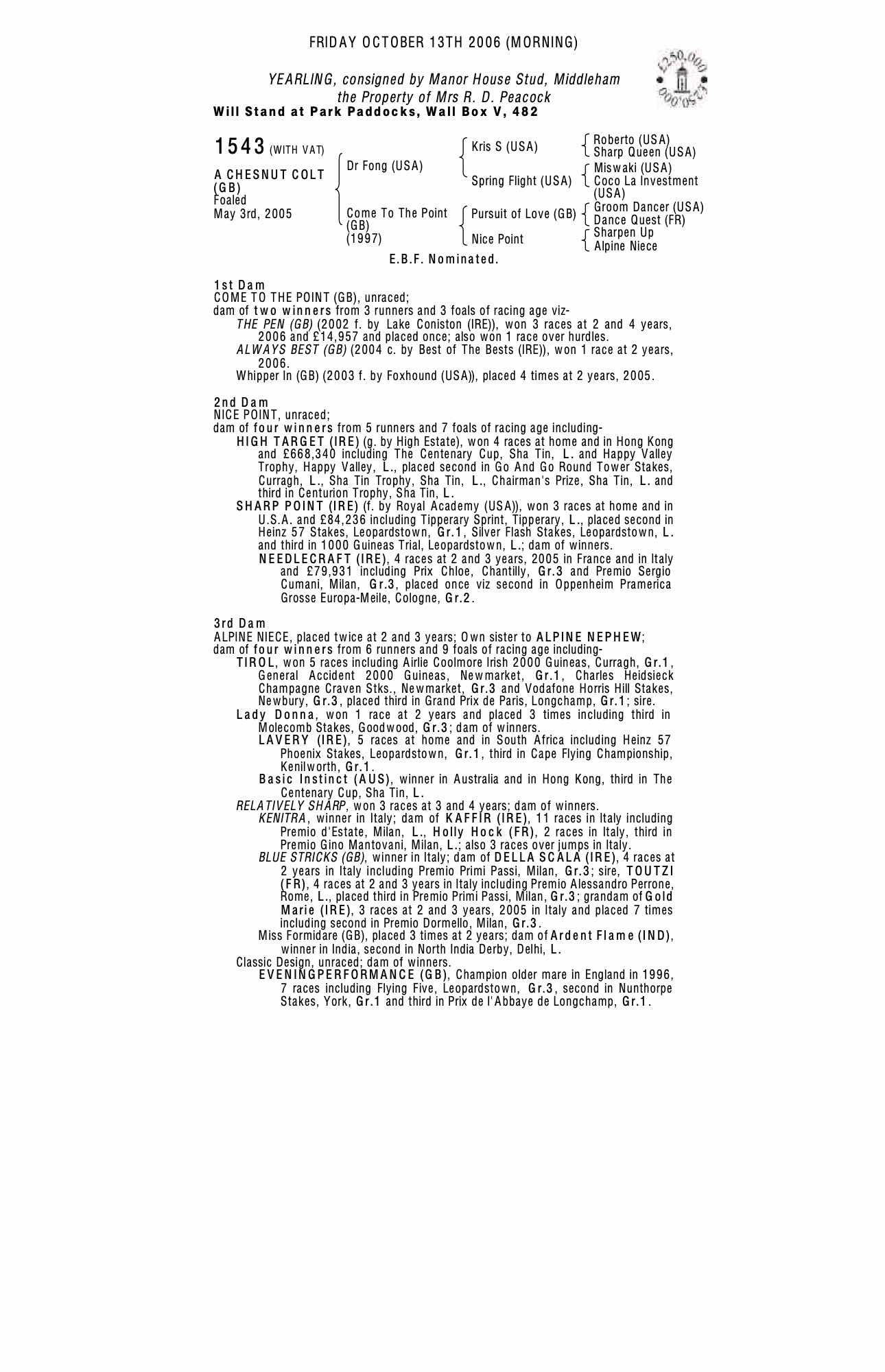 December Yearling Sale 2005 lot 64 C. by Best of The Bests (IRE) 2004, Manor House Stud, Middleham=>Mark Johnston 7,000 gns