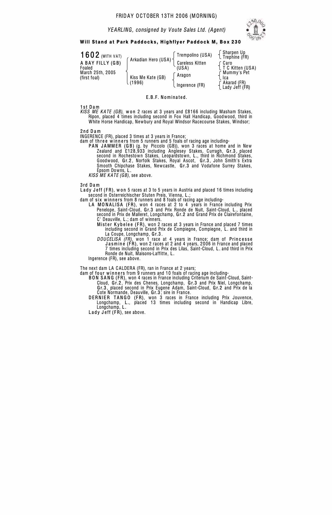 October Yearling Sale, Book 3 2009 lot 1711 F. by Le Vie Dei Colori (GB) 2008, Voute Sales Ltd. (Agent)=>Stefan Radev 800 gns