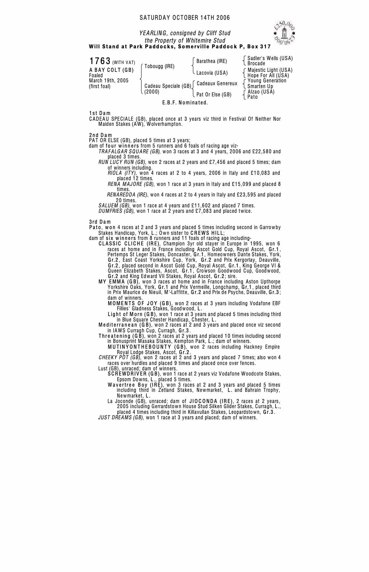 October Yearling Sale, Book 3 2007 lot 1892 C. by Josr Algarhoud (IRE) 2006, Cliff Stud=>Lot Not Sold 11,500 gns
