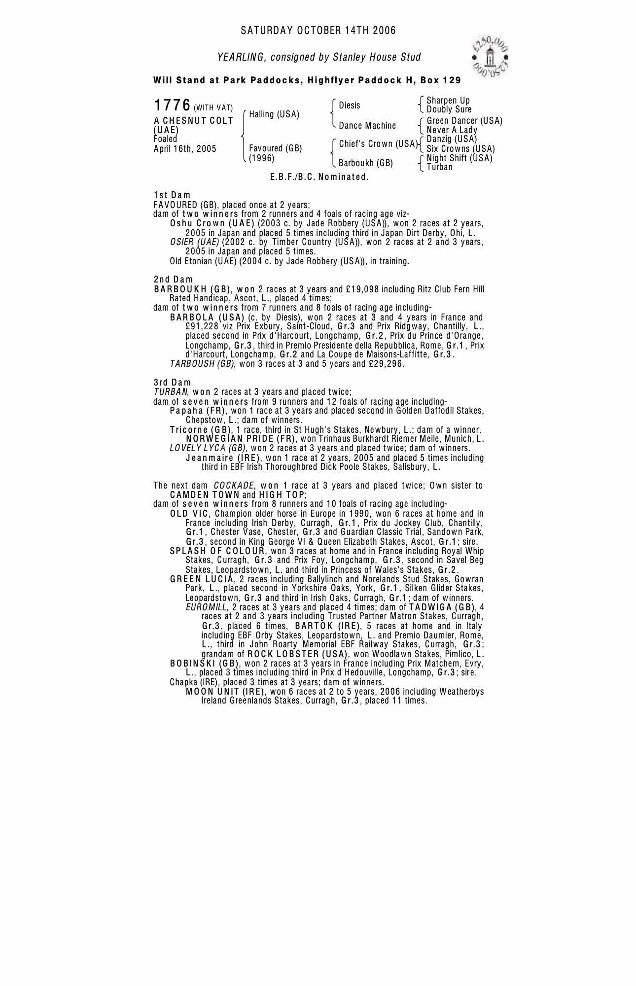 Consignor: Stanley House Stud