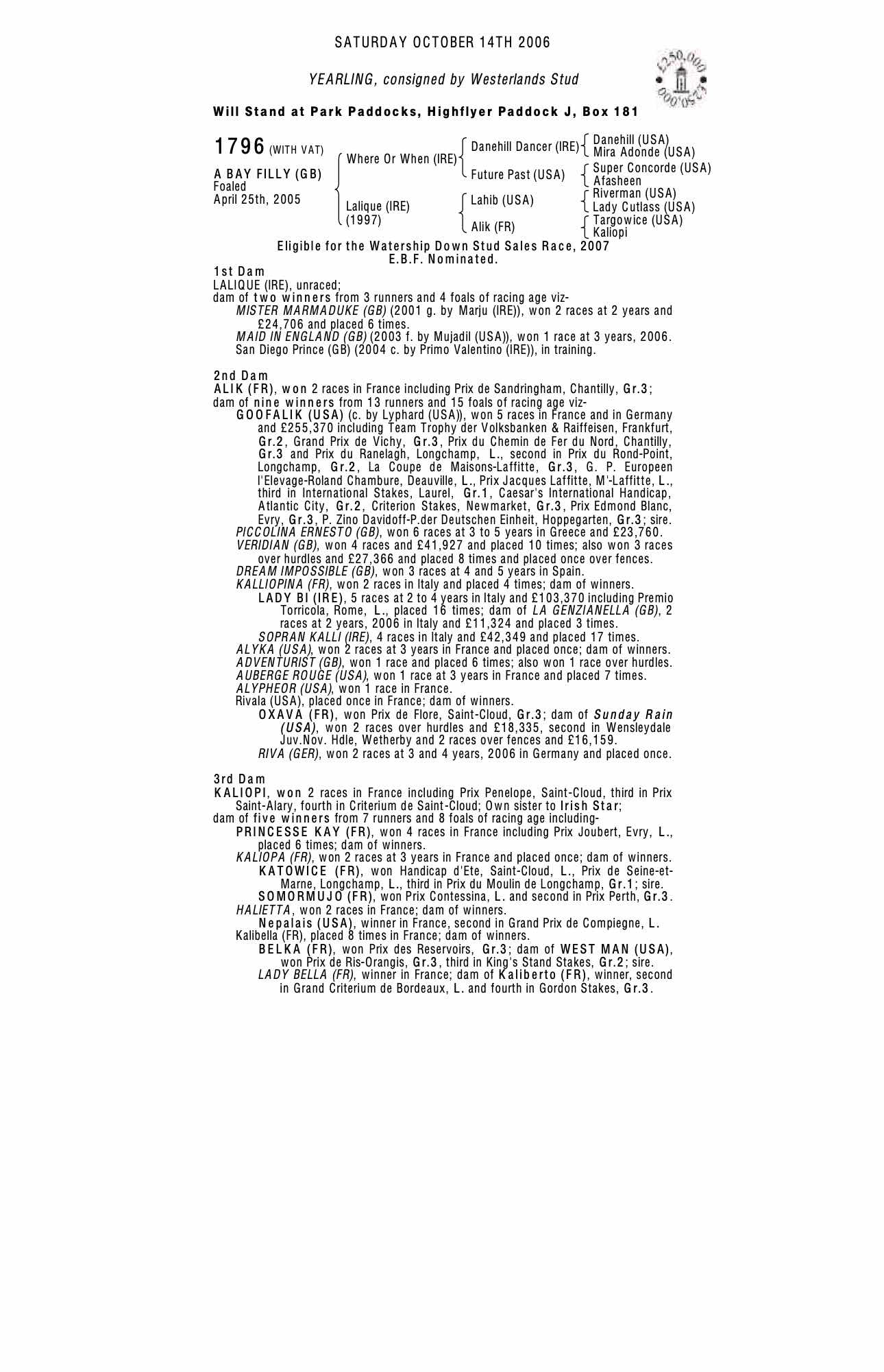 December Foal Sale 2005 lot 1517, Westerlands Stud=>Vendor 6,000 gns