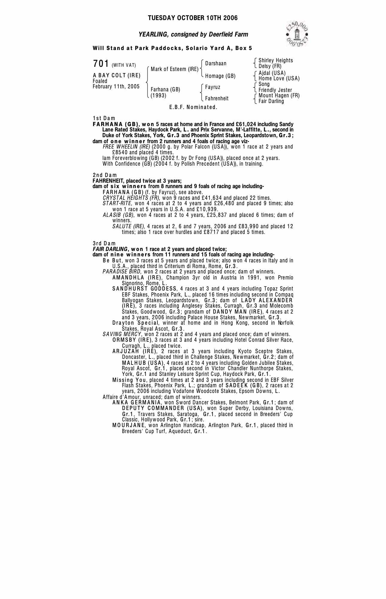 October Yearling Sale, Book 2 2005 lot 1035 F. by Polish Precedent (USA) 2004, Deerfield Farm=>Suzanne Roberts 10,000 gns