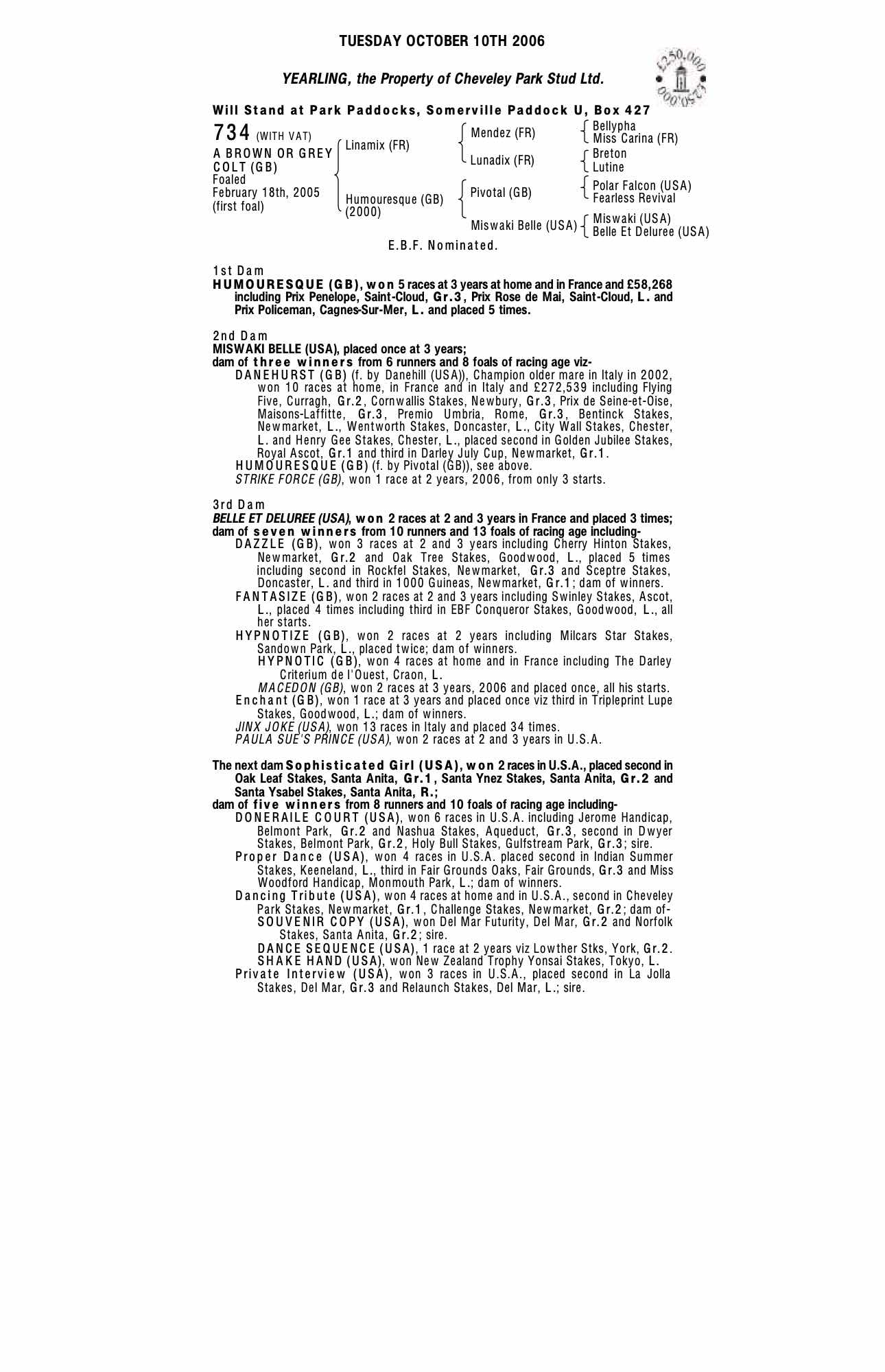 October Yearling Sale, Book 1 2009 lot 455 F. by Medicean (GB) 2008, Cheveley Park Stud Ltd.=>Lot Not Sold 38,000 gns