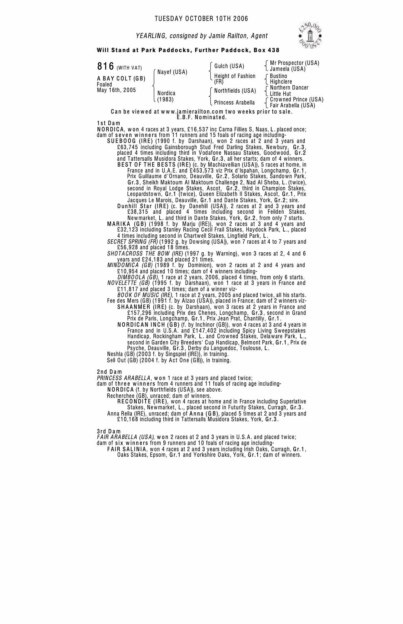 October Yearling Sale, Book 1 2004 lot 544 F. by Singspiel (IRE) 2003, Jamie Railton, Agent=>Darley Stud Management 55,000 gns