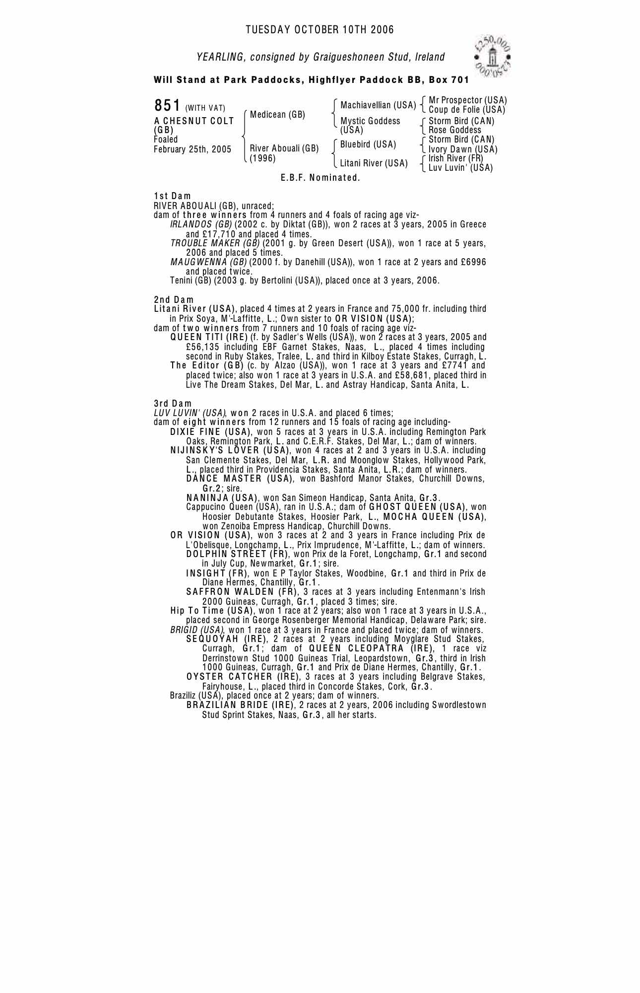 December Foal Sale 2005 lot 1240, Petches Farm=>BBA Ireland 8,500 gns