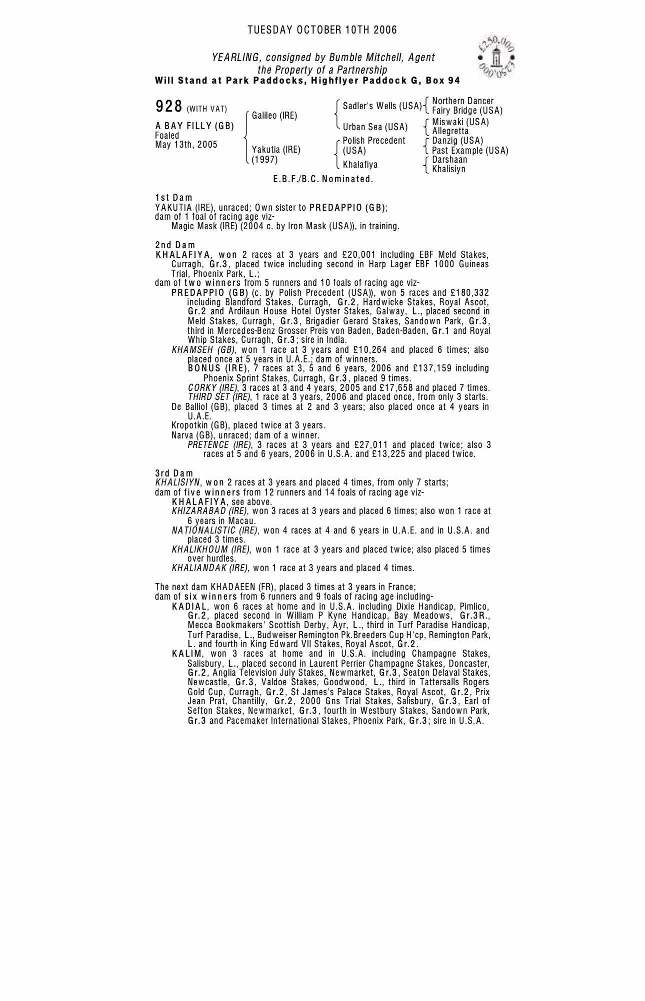 December Foal Sale 2008 lot 934 F. by Dubai Destination (USA) 2008, Bumble Mitchell, Agent=>Seamus Kennedy 1,500 gns