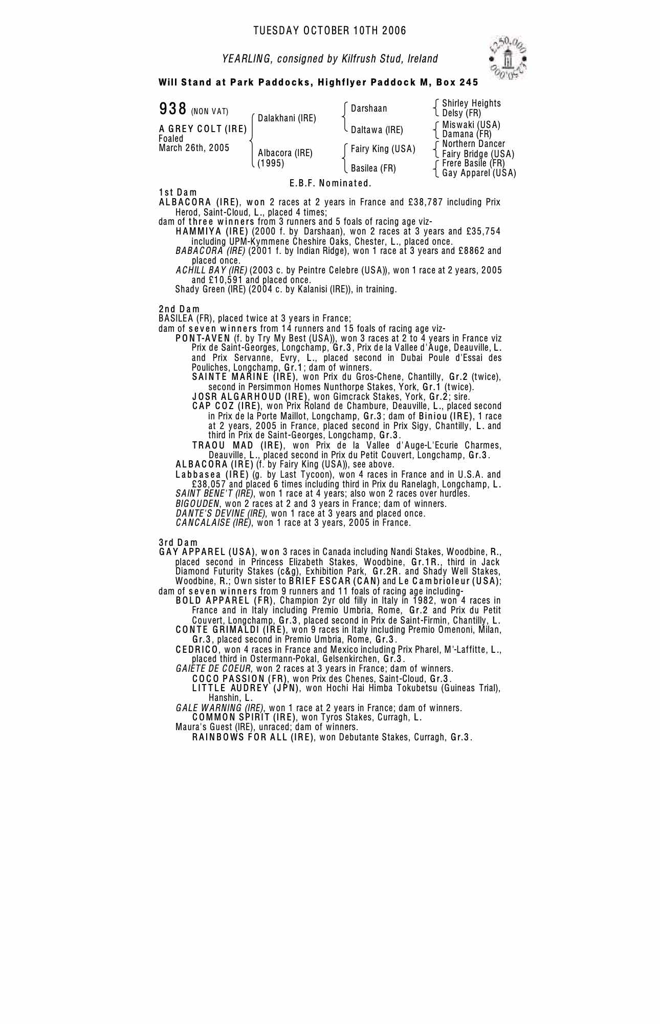 October Yearling Sale, Book 2 2007 lot 1167 C. by Barathea (IRE) 2006, Kilfrush Stud, Ireland=>Stilvi Compania 20,000 gns