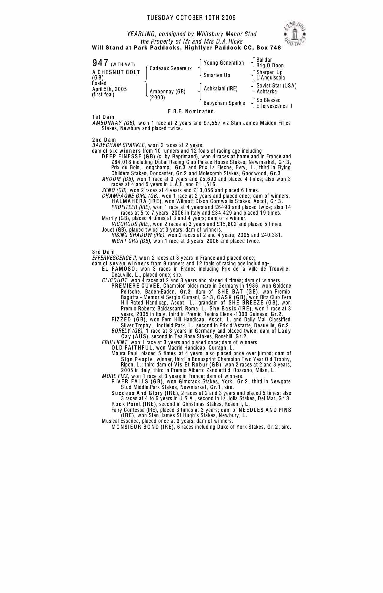 December Yearling Sale 2007 lot 47 C. by Dr Fong (USA) 2006, Lavington Stud=>Danny Murphy 13,000 gns