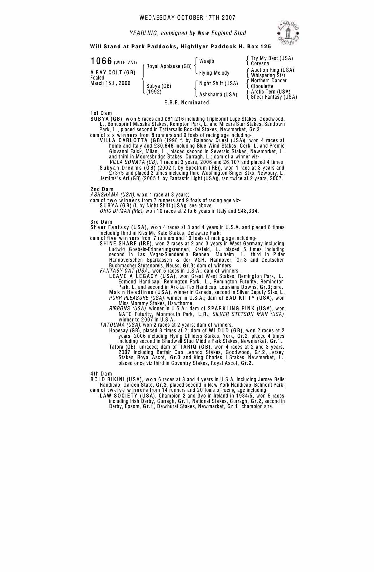 October Yearling Sale, Book 1 2006 lot 514 F. by Fantastic Light (USA) 2005, Furnace Mill Stud=>MW Easterby 55,000 gns