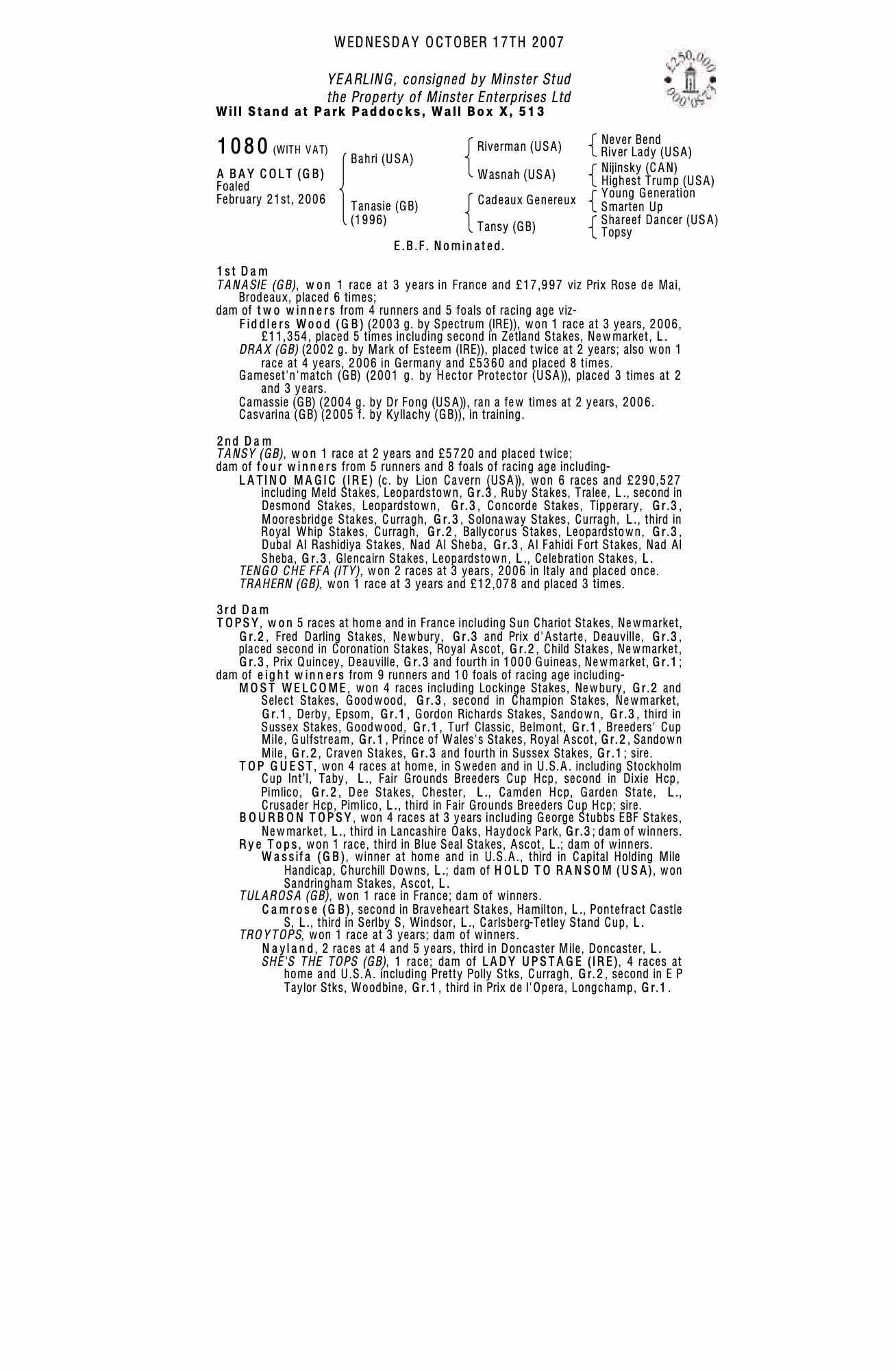 Consignor: Minster Stud