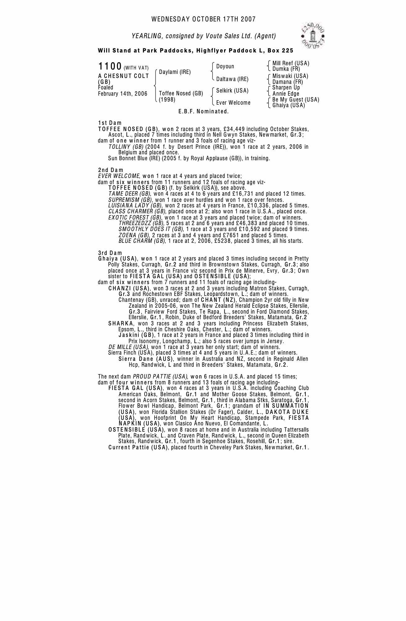 December Foal Sale 2007 lot 1658 F. by Dansili (GB) 2007, Unex Bloodstock=>Badgers Bloodstock 50,000 gns