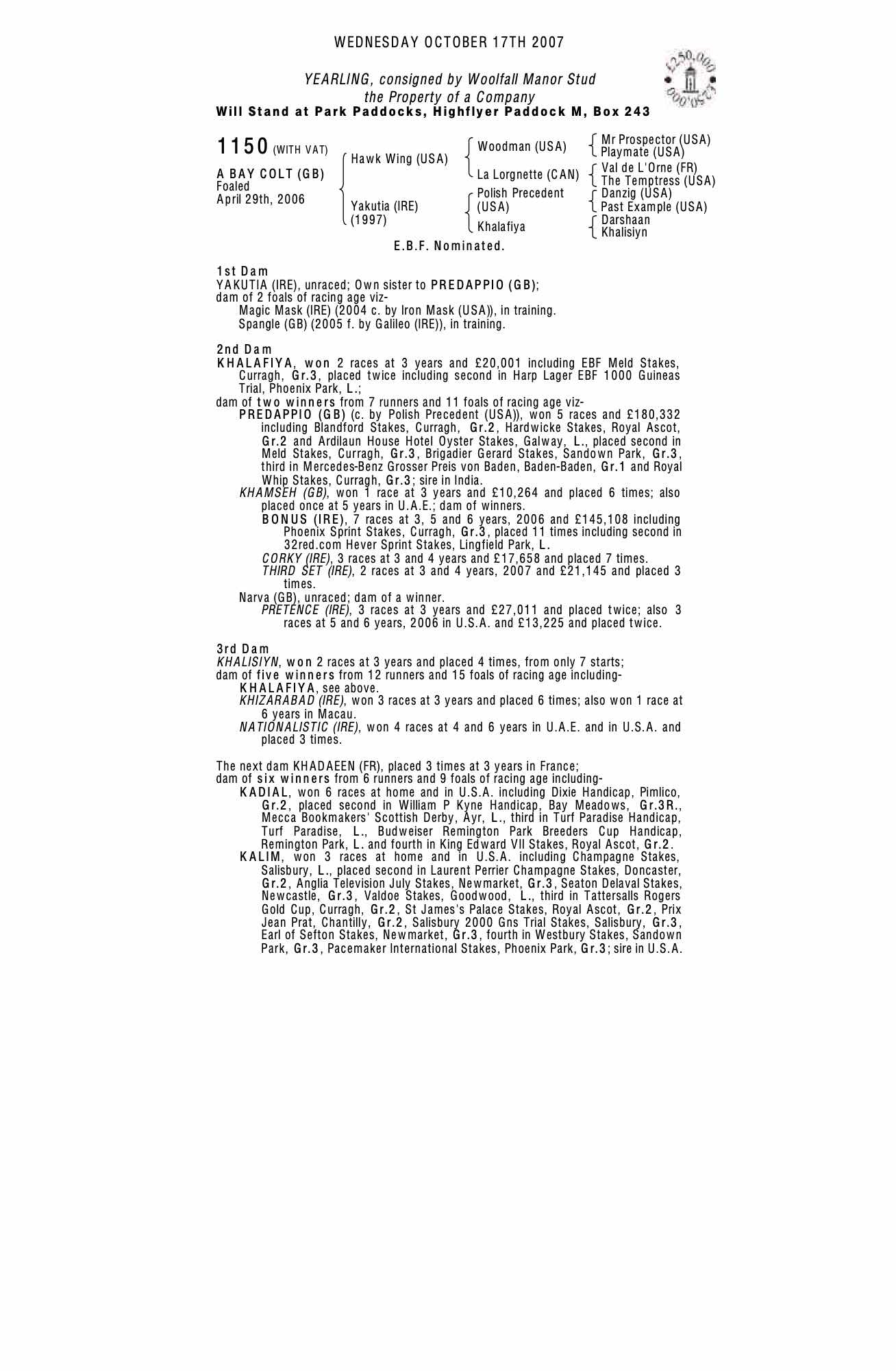 December Foal Sale 2006 lot 963, Bumble Mitchell (Agent)=>Woolfall Manor Stud 36,000 gns