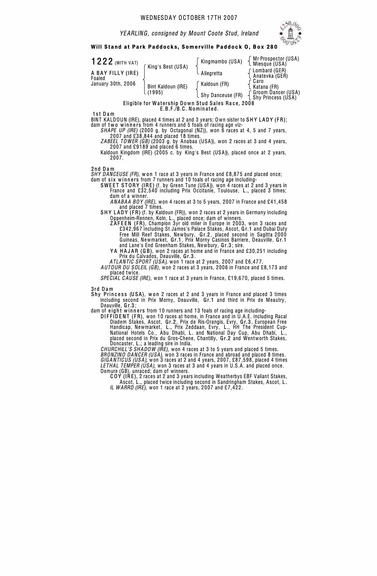 September Yearling Sale 2008 lot 335 F. by Xaar (GB) 2007, Ringfort Stud (Agent)=>Eve Johnson-Houghton €4,500